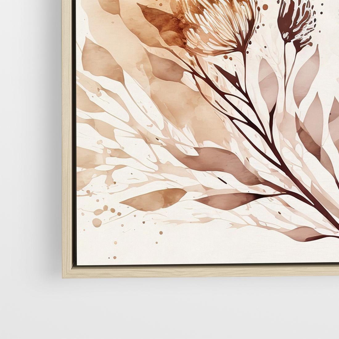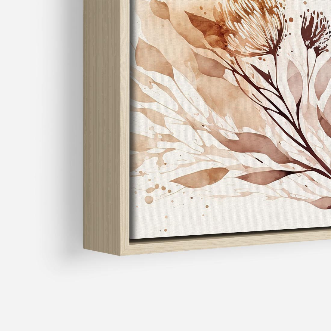 Obraz w ramie 50x50 - Nostalgiczne tańce pędzla - akwarelowe kwiaty, gałęzie - rama drewno
