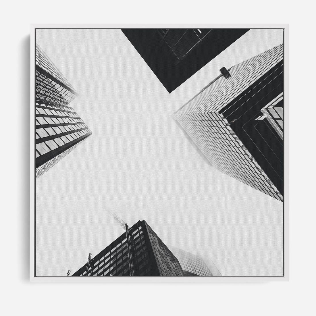 Obraz w ramie 50x50 - Nowoczesna Dynamika - perspektywa, wieżowce - rama biała