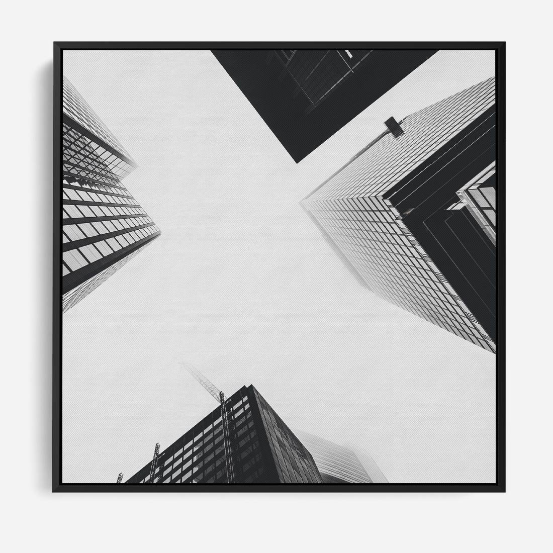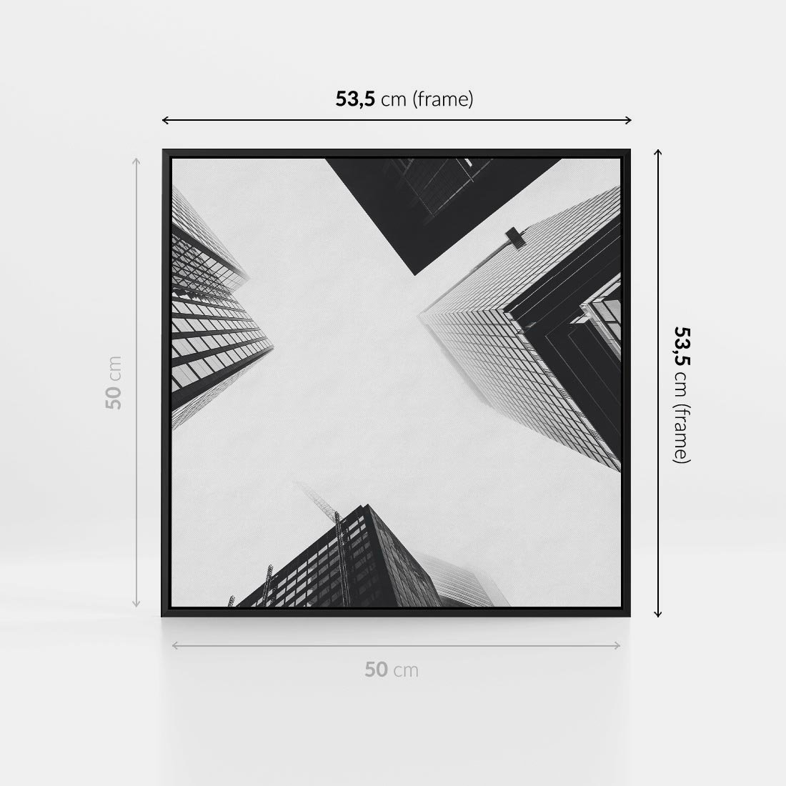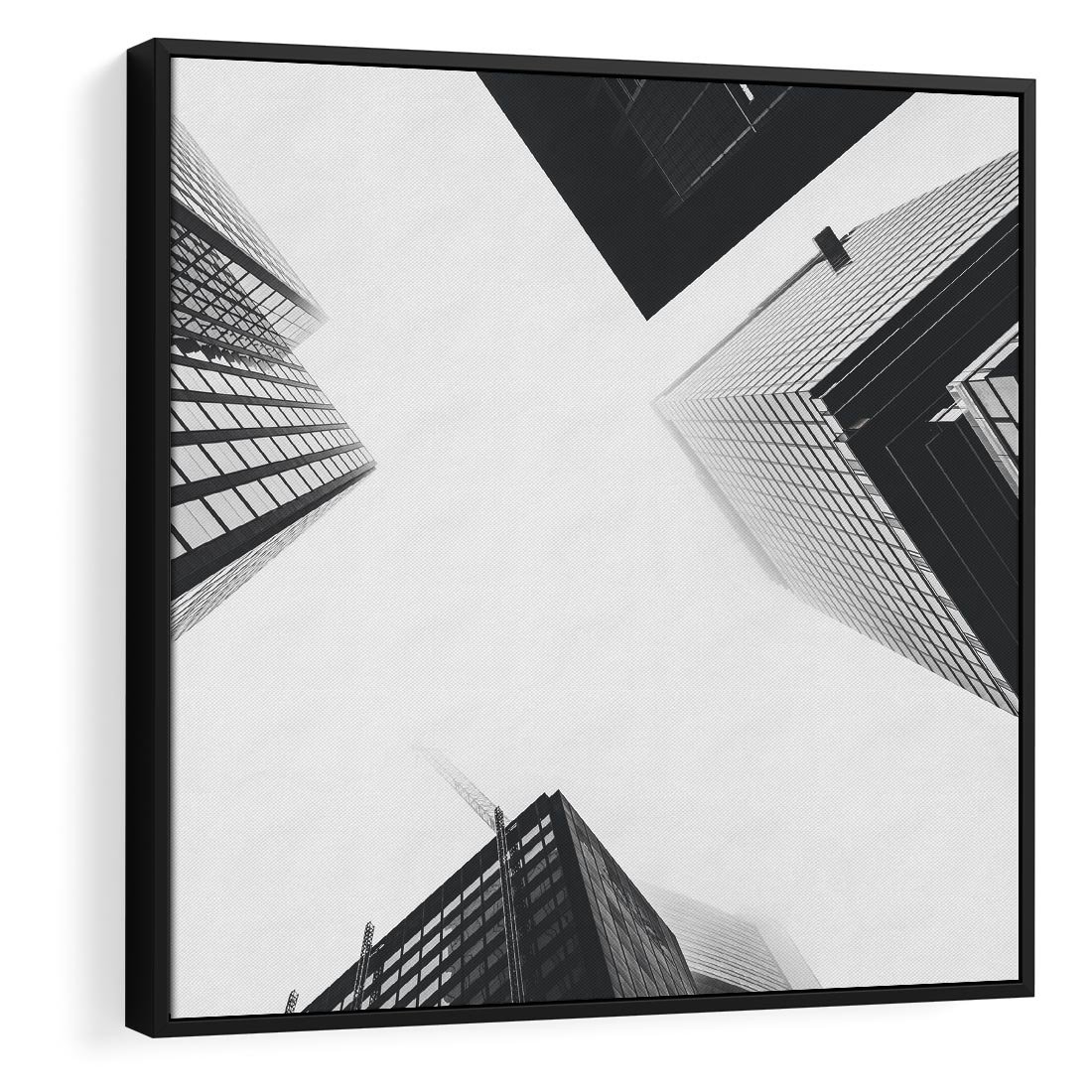Obraz w ramie 50x50 - Nowoczesna Dynamika - perspektywa, wieżowce - rama czarna