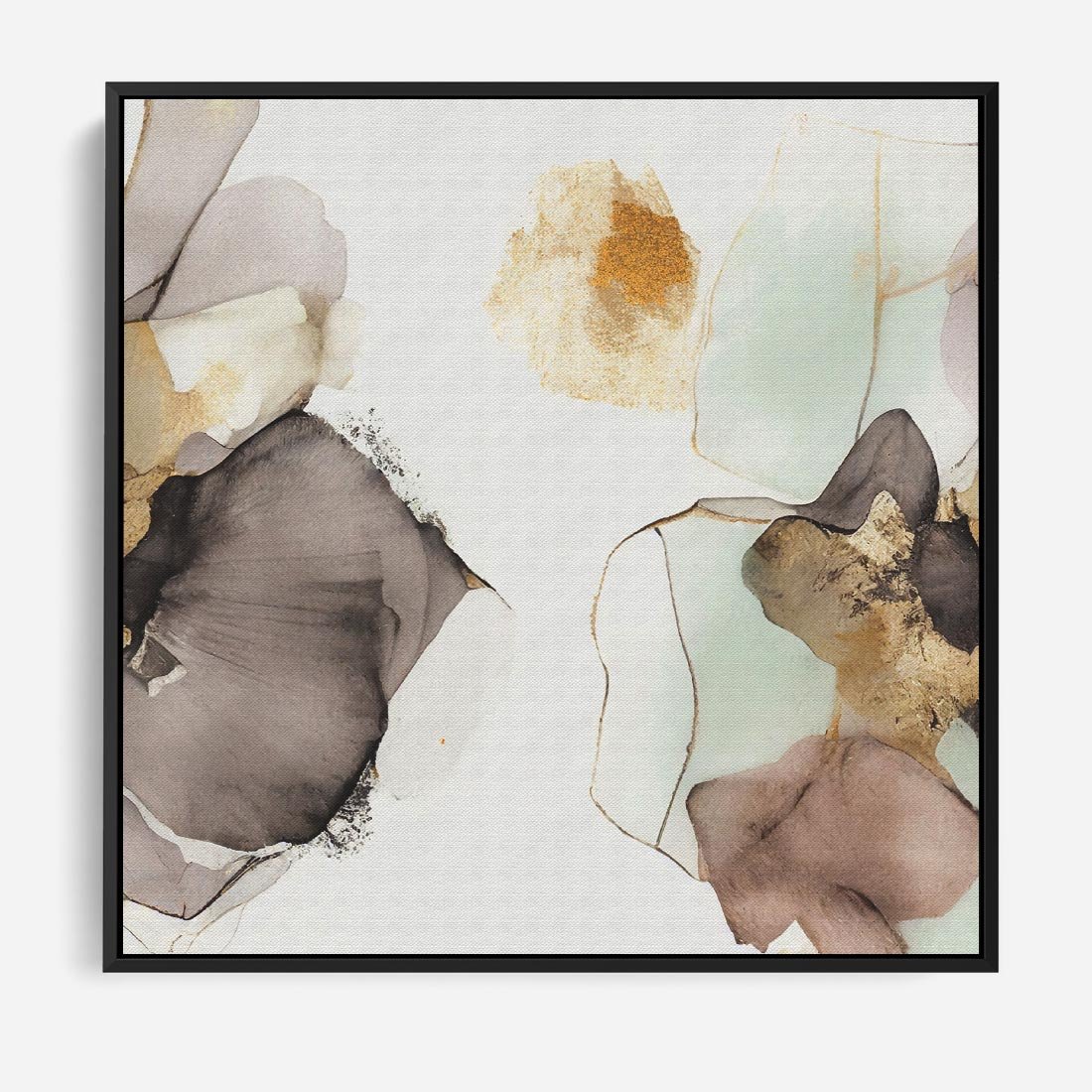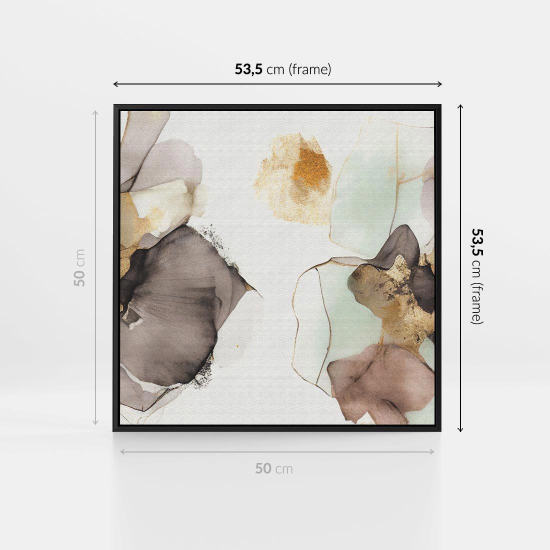 Obraz w ramie 50x50 - Nowoczesne Elegancje - akwarela, złote linie i plamy - rama czarna