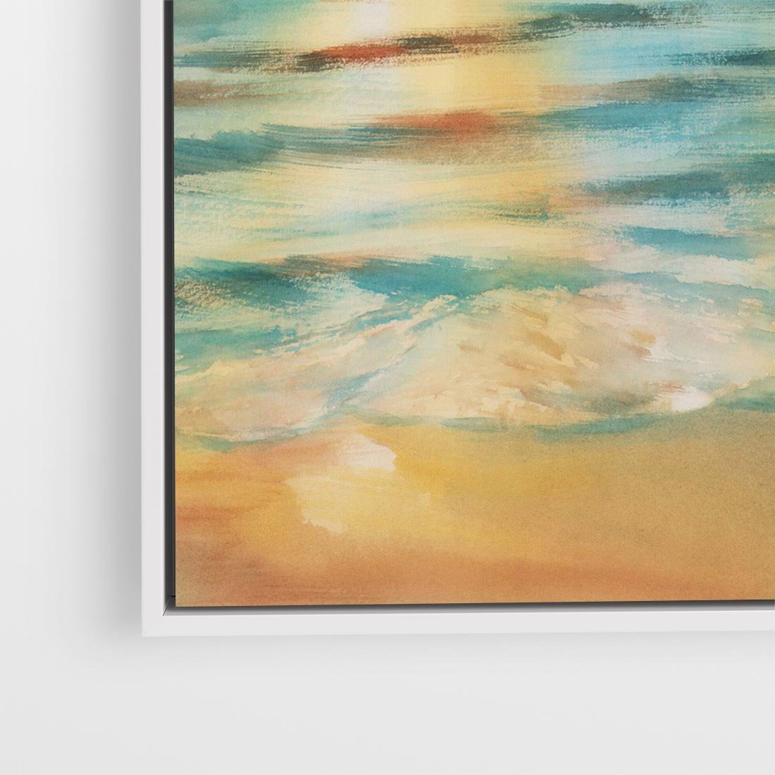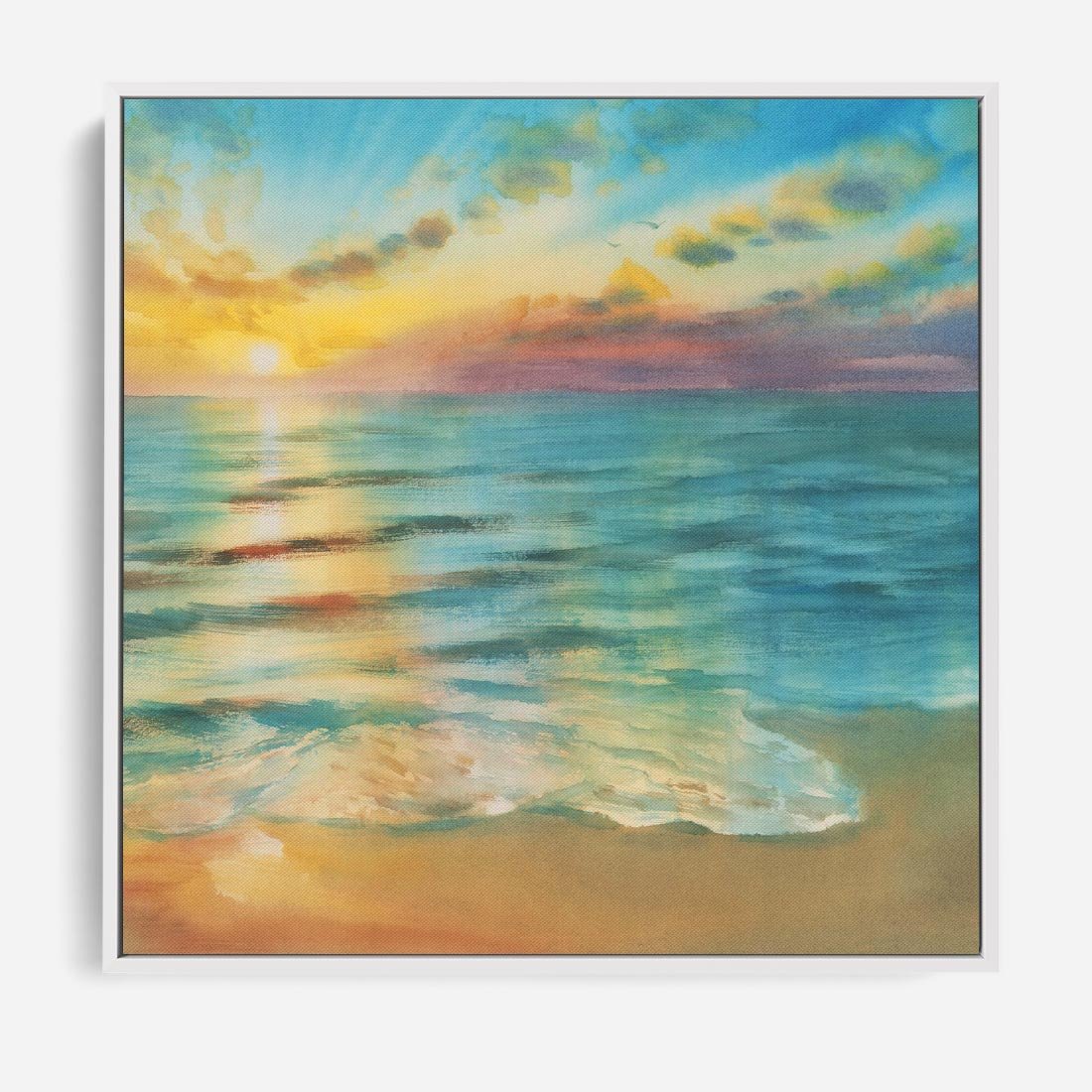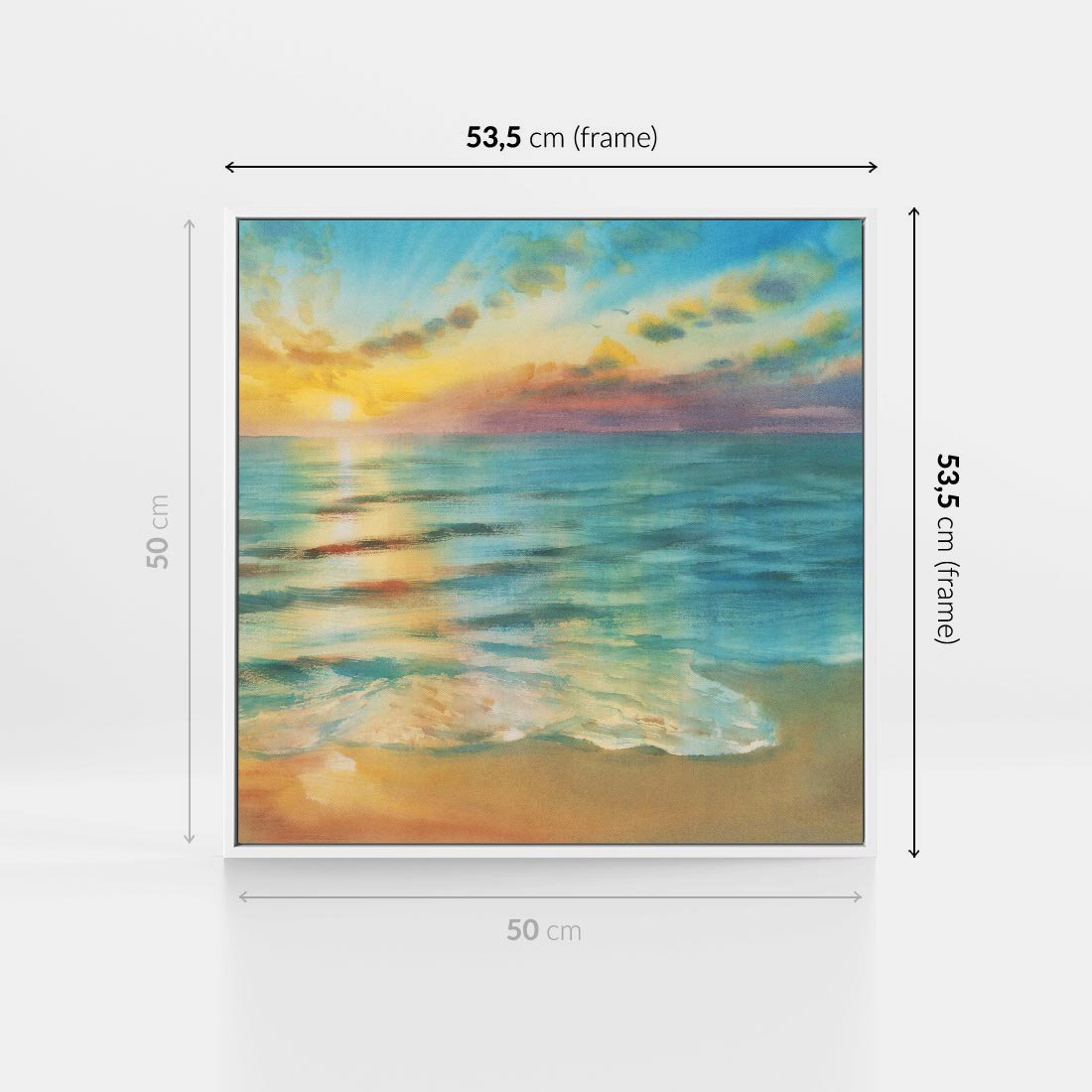 Obraz w ramie 50x50 - Objawienie Fioletowego Świtu - fioletowy wschód słońca, słońce wschodzi nad morzem - rama biała