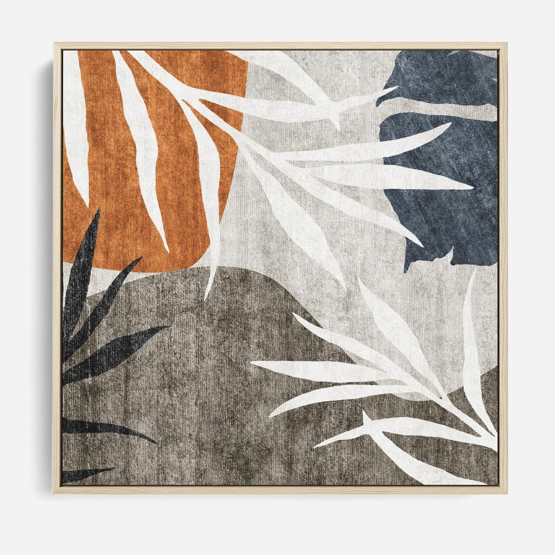 Obraz w ramie 50x50 - Oddechy ciszy i ruchu - rzut liści palmy, monstery - rama drewno