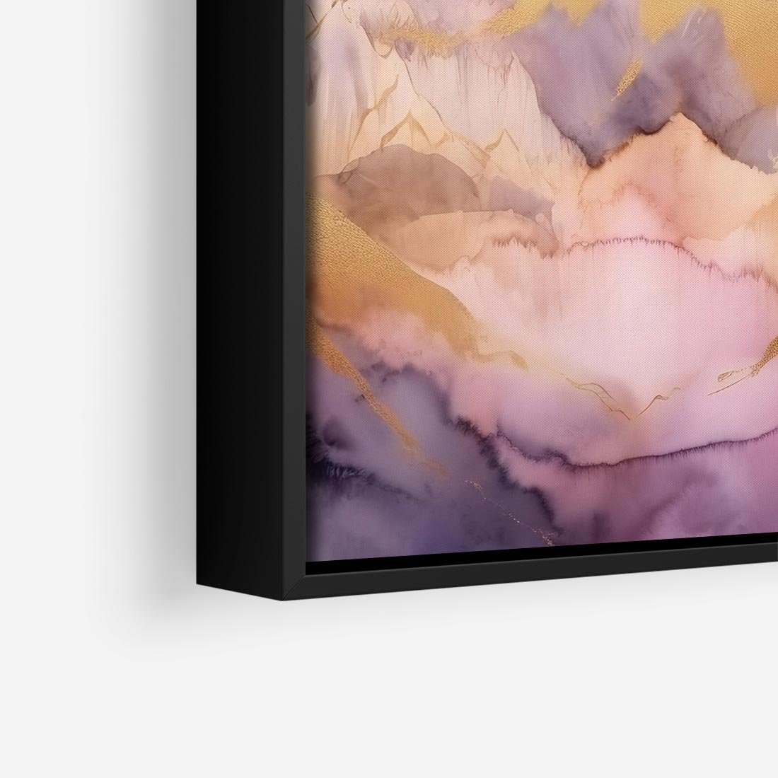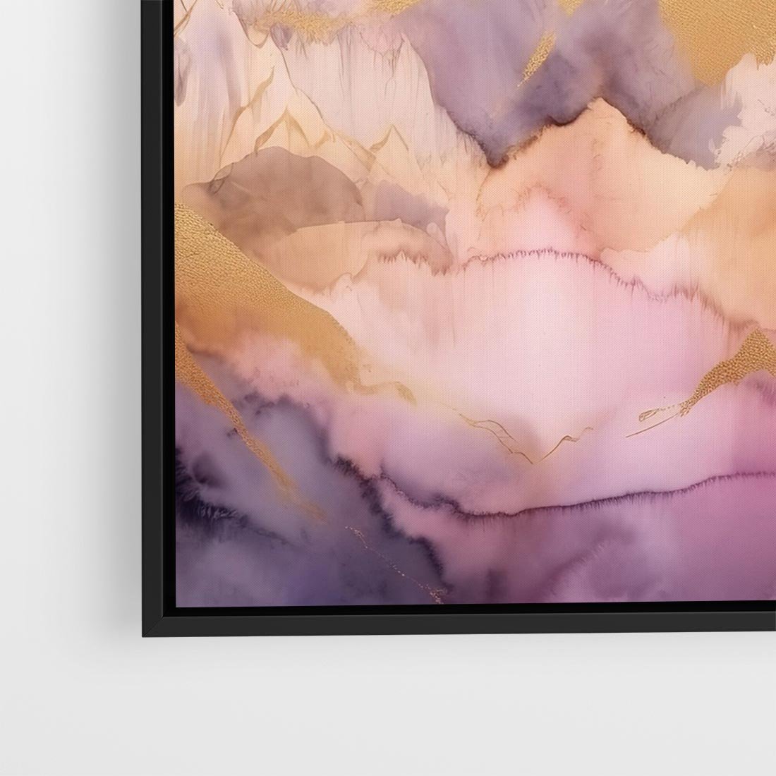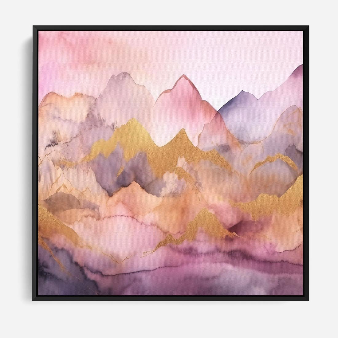Ten obraz przedstawia pastelowe, różowe góry z akwarelowymi detalami w złotych tonach. Sztuka nowoczesna emanuje spokojem i subtelnością, nadając wnętrzom salonu lub sypialni unikalny urok. Odcienie różu i złota tworzą harmonijną kompozycję, która wzbogaca każdą przestrzeń.