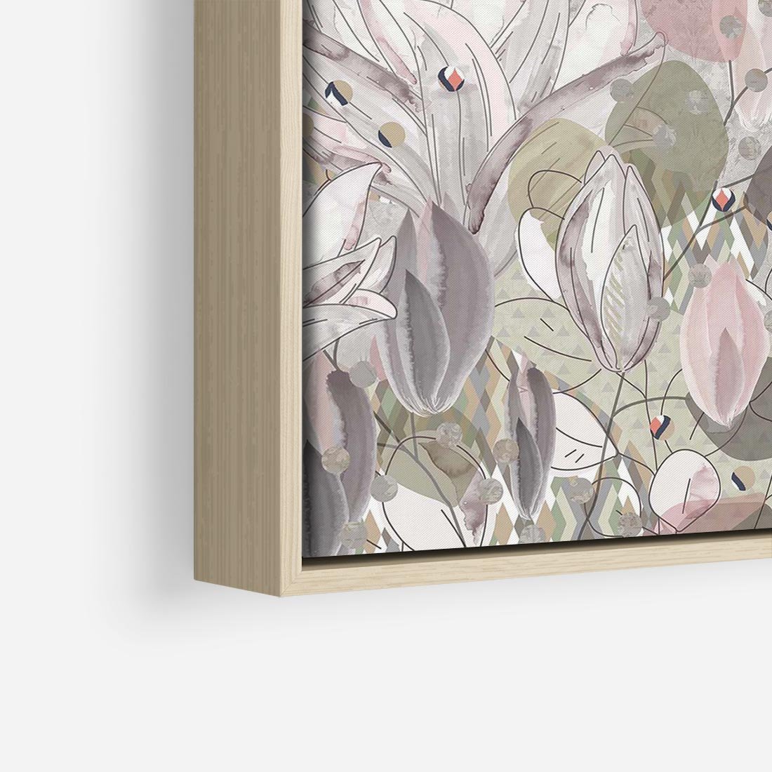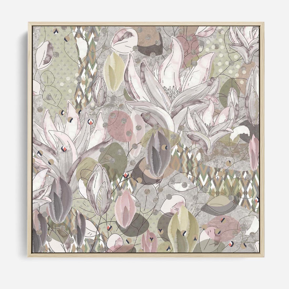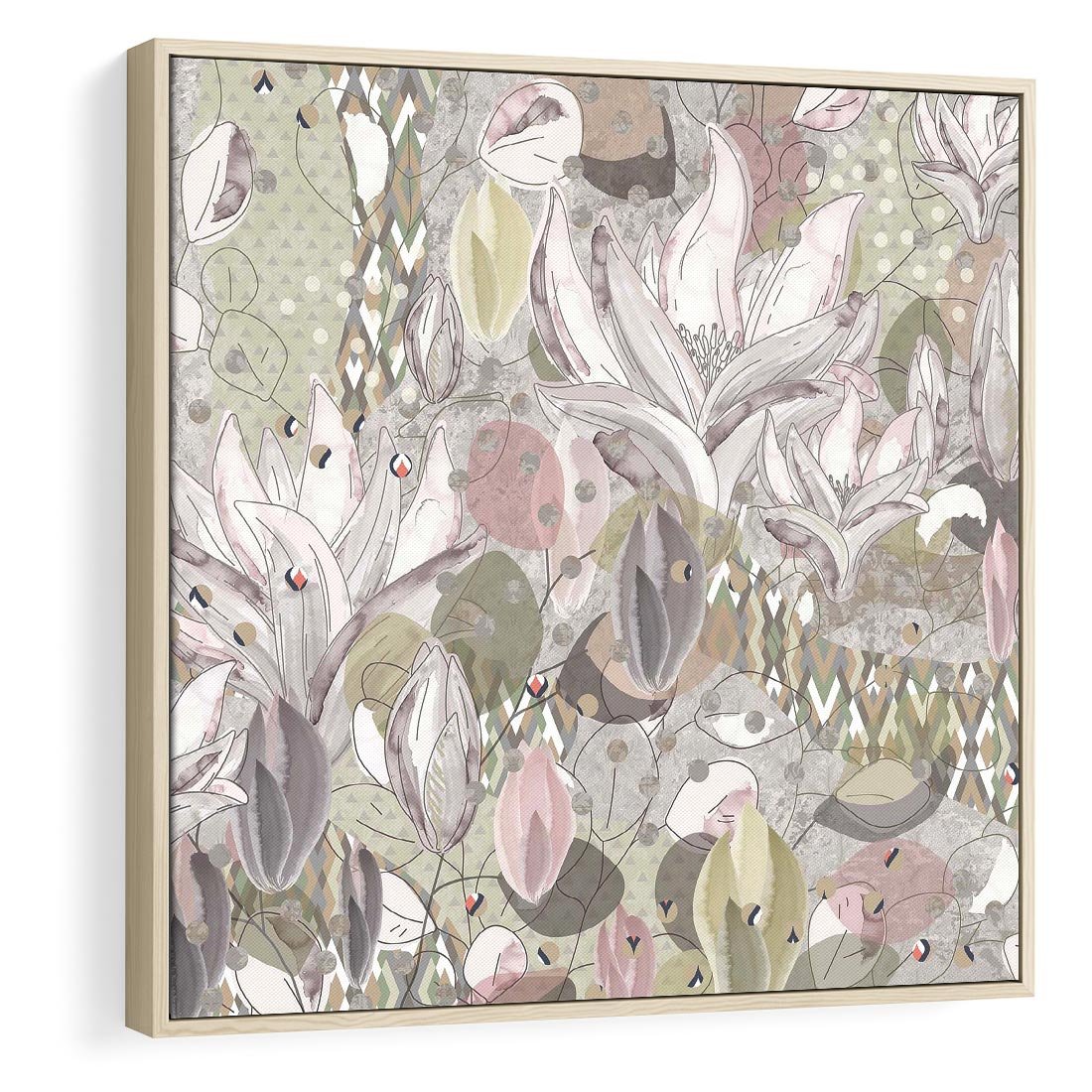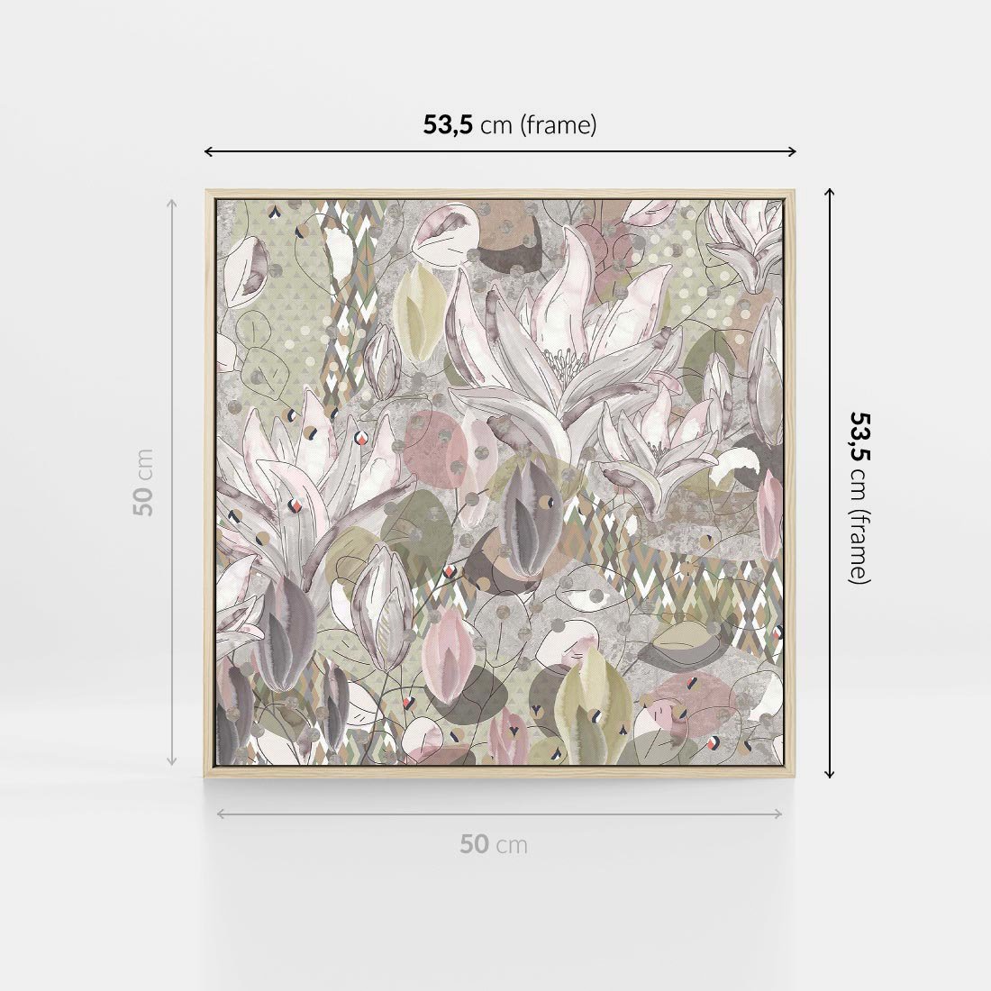 Obraz w ramie 50x50 - Pejzaże zatajonej duszy - połączenie tekstur, roślinne motywy - rama drewno