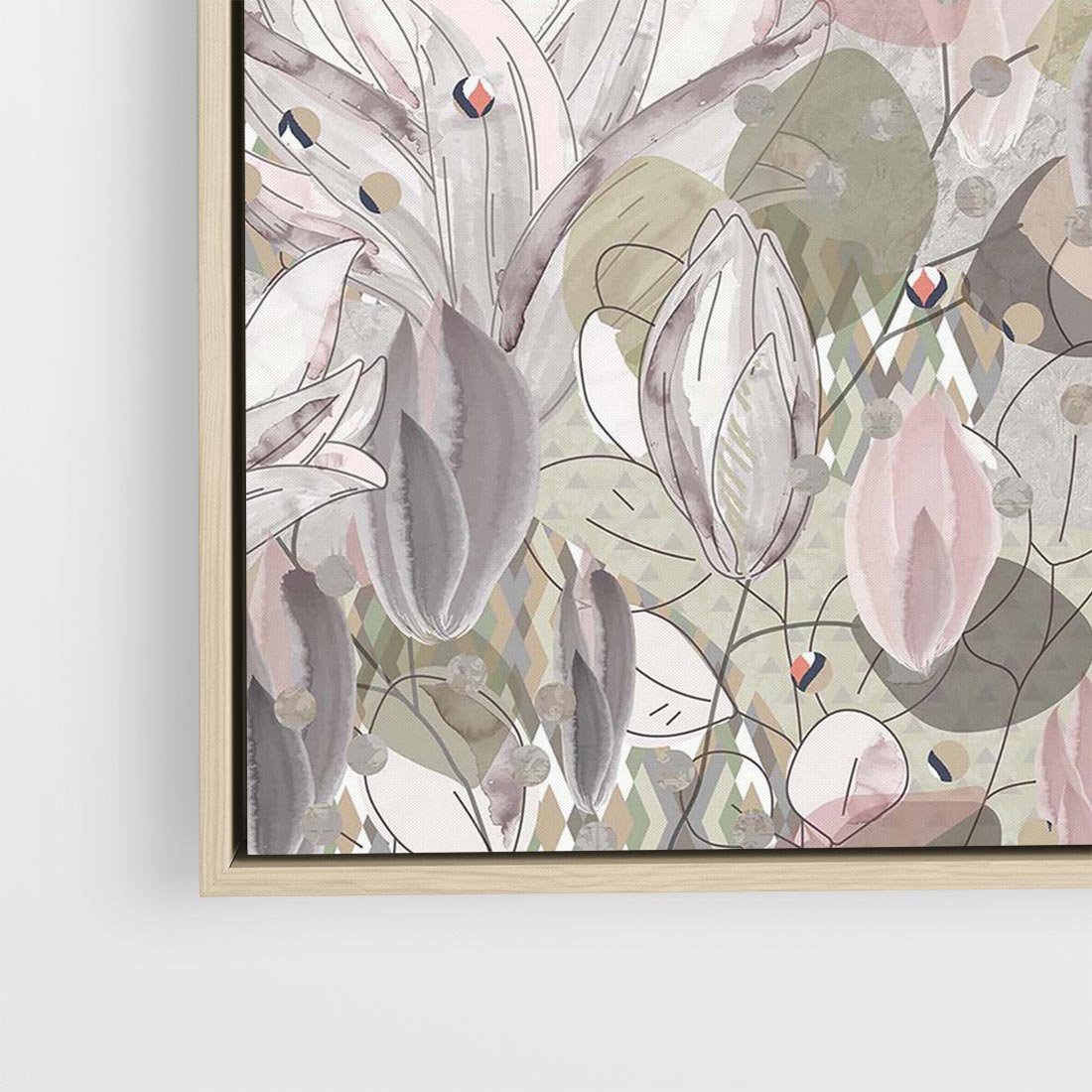 Odkryj wyjątkowy obraz, który przyciąga wzrok połączeniem różnorodnych tekstur i subtelnych roślinnych motywów. Stonowane jasne kolory w odcieniach zieleni i pudrowego różu nadają mu delikatny i harmonijny charakter. To dzieło sztuki stworzone dla miłośników natury i minimalistycznej estetyki, pragnących wprowadzić spokój i harmonię do swoich wnętrz. Doskonały akcent dla tych, którzy cenią wyrafinowany styl i delikatność.