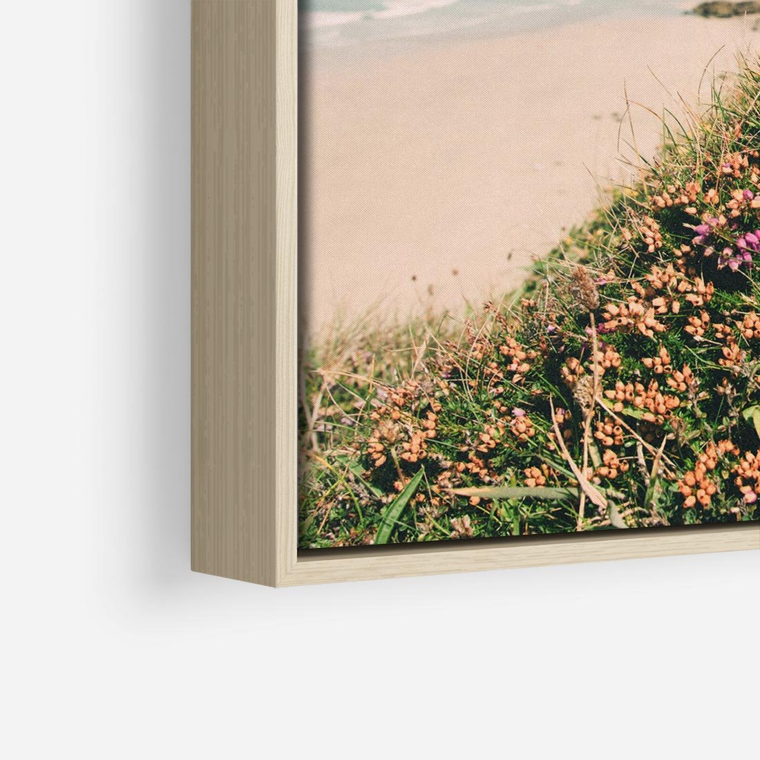 Odkryj magiczną atmosferę nadmorskich wakacji dzięki tej uroczej fotografii. Perspektywa klifu porośniętego różowymi kwiatami, rozciągającego się w kierunku oceanu i plaży, przeniesie Cię w świat spokoju i piękna natury. To idealny akcent dla tych, którzy pragną poczuć morską bryzę i magię egzotycznej przygody.