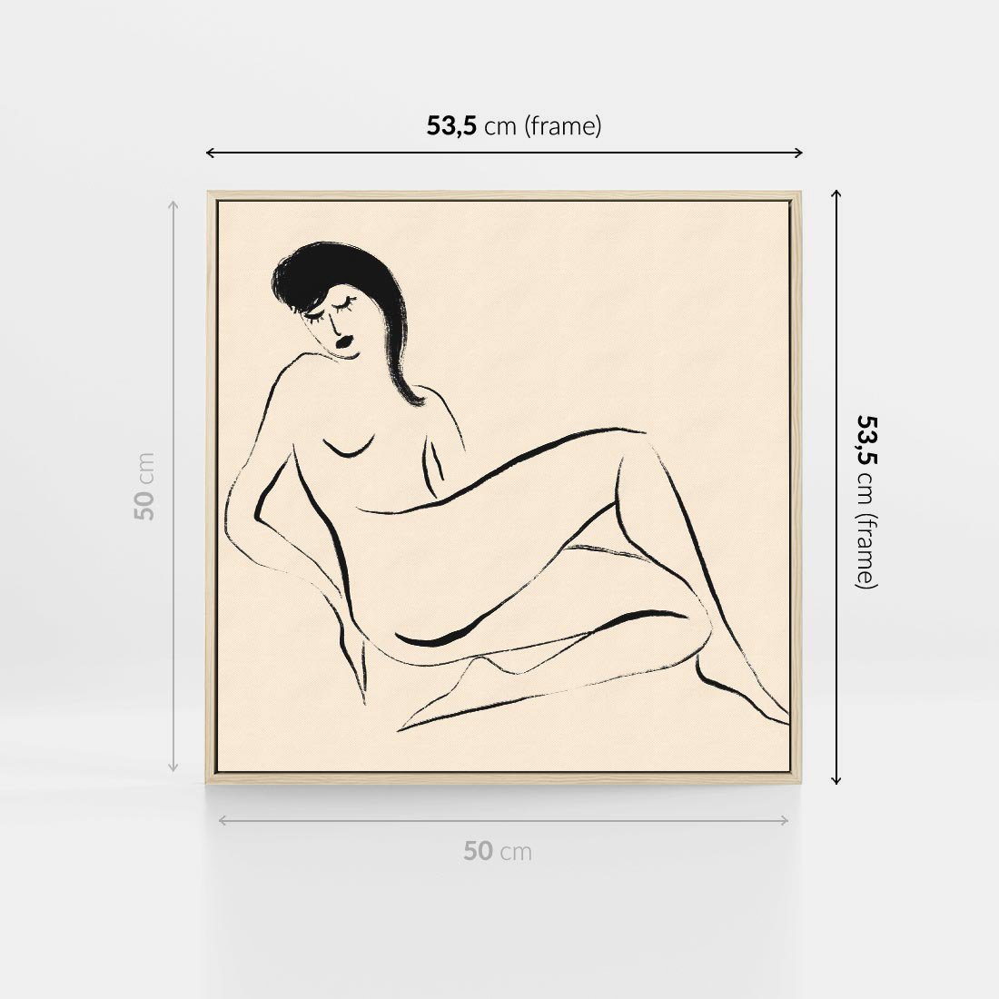 Obraz w ramie 50x50 - Piękno w Minimalizmie - abstrakcyjny rysunek, minimalistyczna kreska - rama drewno