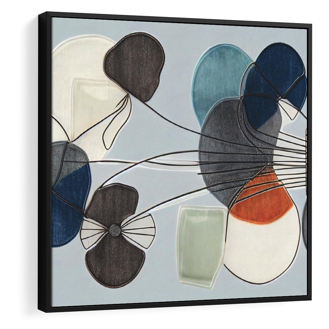 Obraz w ramie 50x50 - Plamy w Niebieskim - sztuka abstrakcyjna, linie - rama czarna