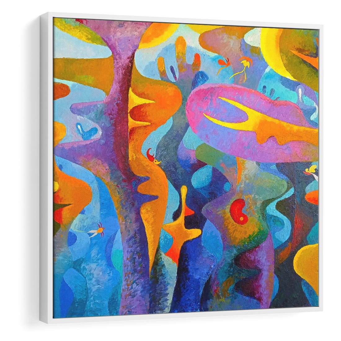 Obraz w ramie 50x50 - Płomienne Tańce Abstrakcji - energetyczna abstrakcja, dziwne formy - rama biała