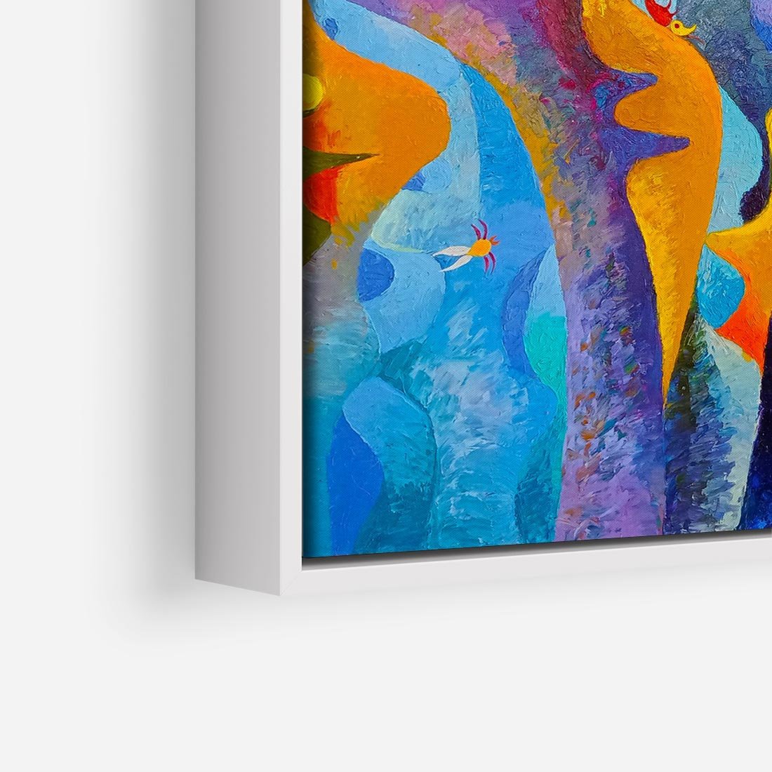 Ta energetyczna abstrakcja ukazuje dziwne formy, które tańczą wśród intensywnych ognistych kolorów. Płomienne Tańce Abstrakcji to eksplozja energii i wyobraźni, gdzie formy i kolory łączą się w dynamiczną harmonię, tworząc abstrakcyjną opowieść o ruchu, pasji i niezwykłości.