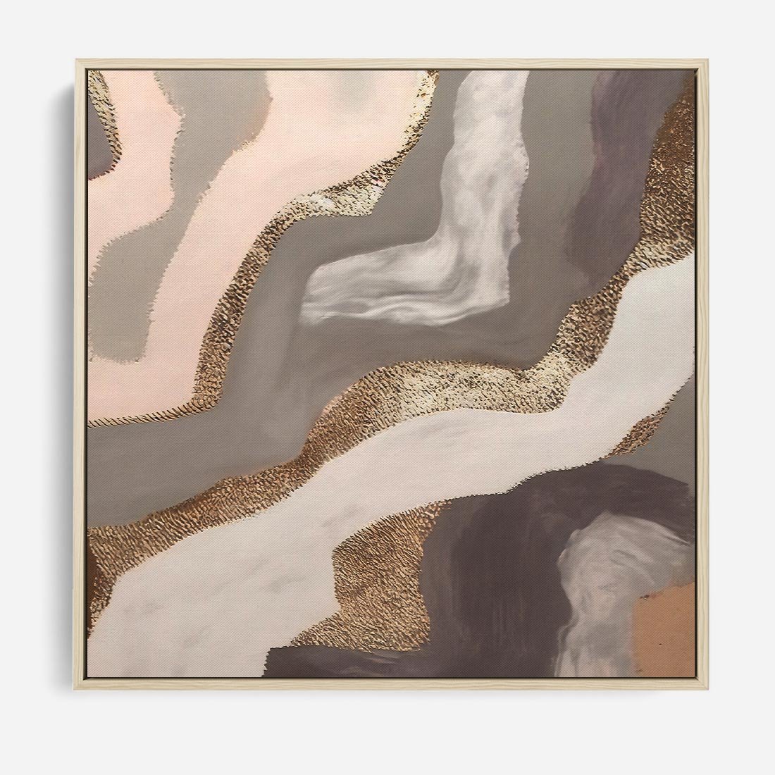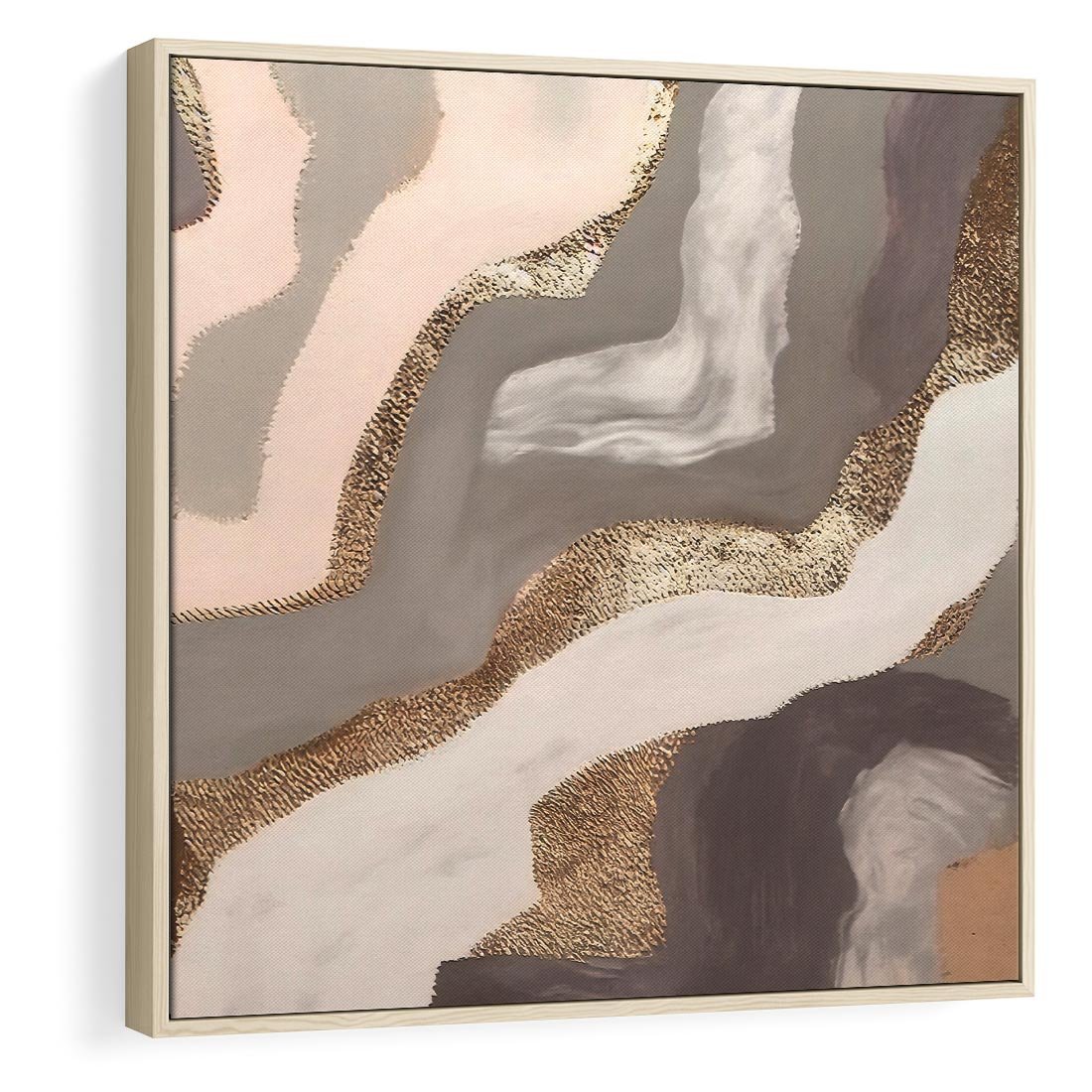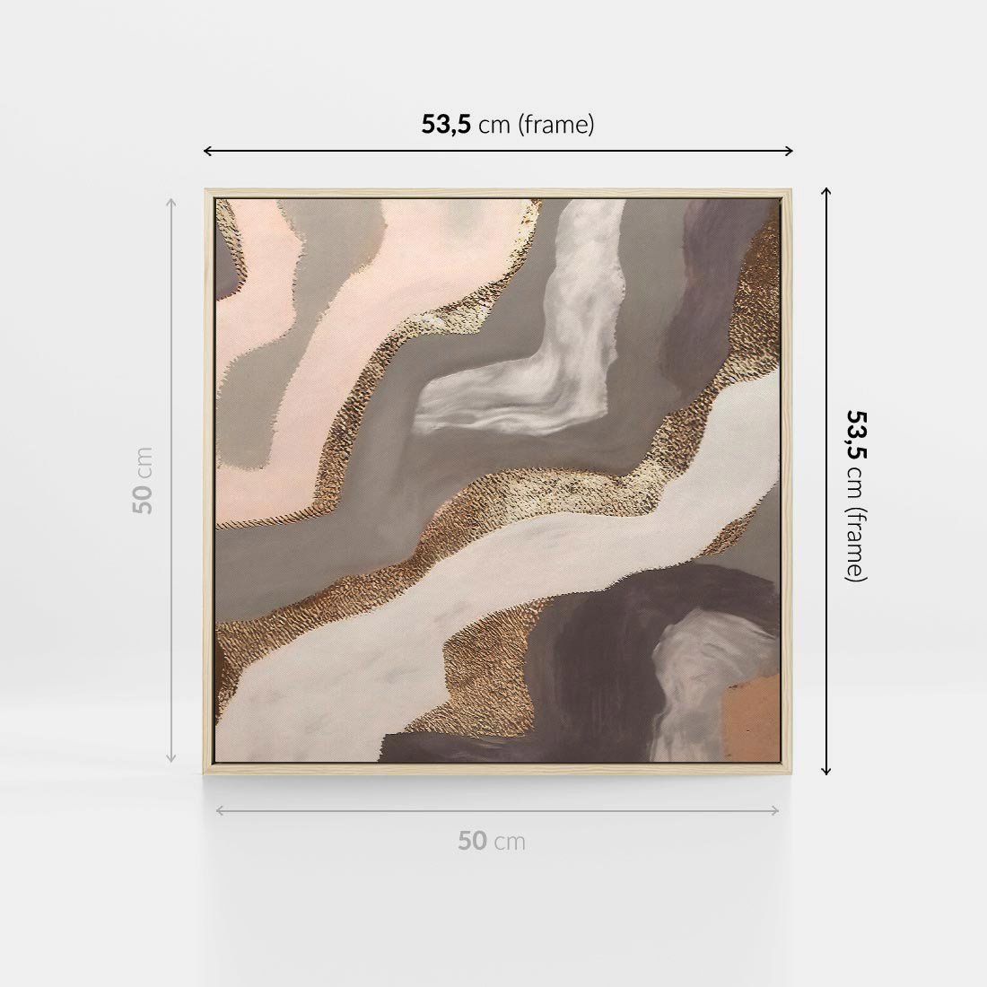 Obraz w ramie 50x50 - Płynne Fale - abstrakcja, neutralne kolory - rama drewno