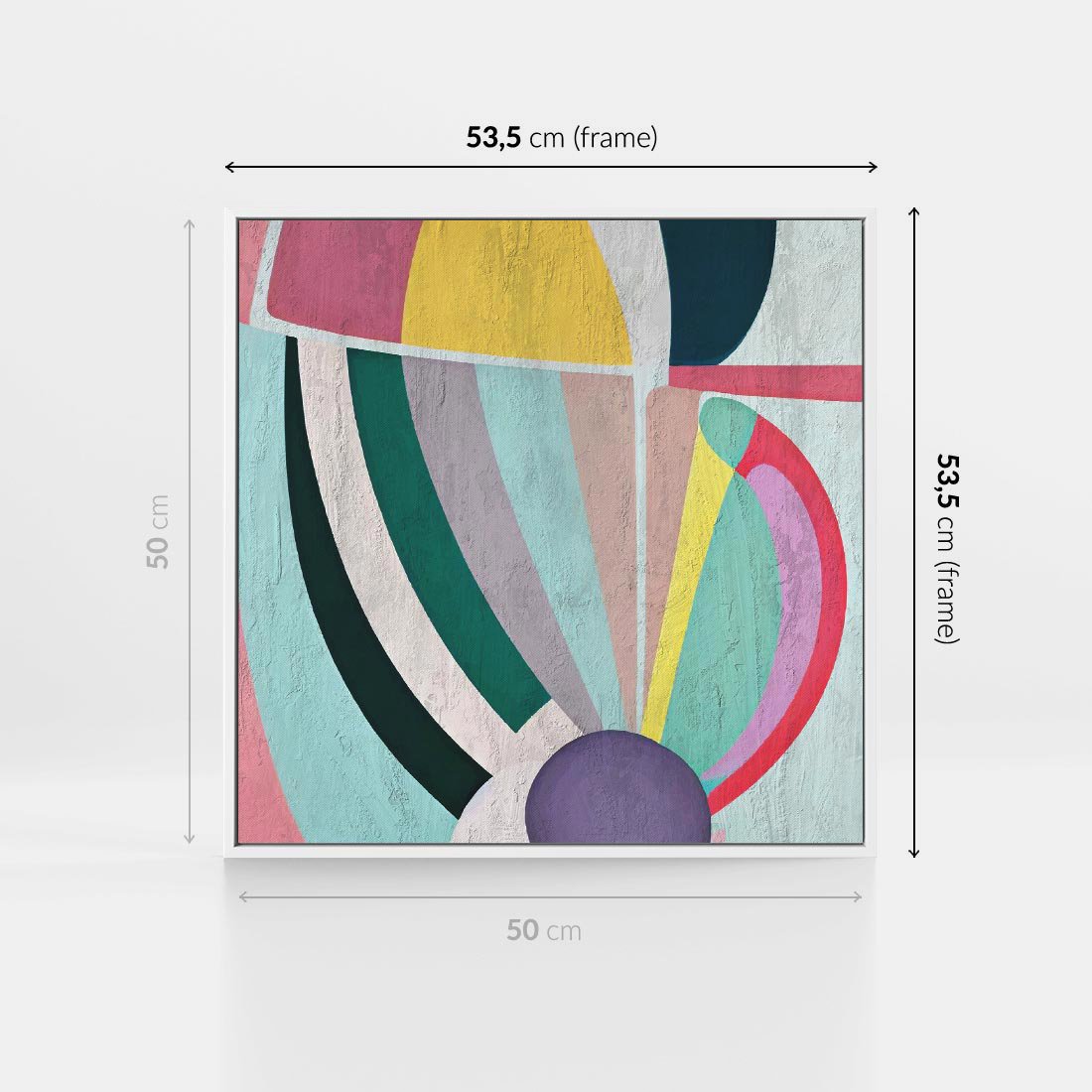 Obraz w ramie 50x50 - Podróżne Echa Przestrzeni - abstrakcyjne dziwne kształty, olejny obraz - rama biała
