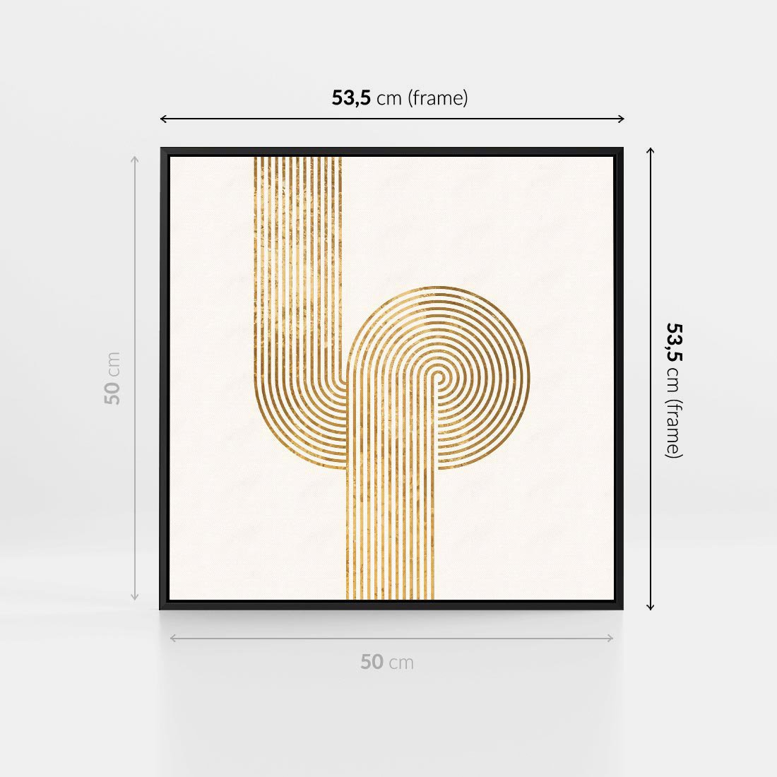 Obraz w ramie 50x50 - Podróżne Kształty - geometryczne linie w złotym kolorze, minimalizm - rama czarna