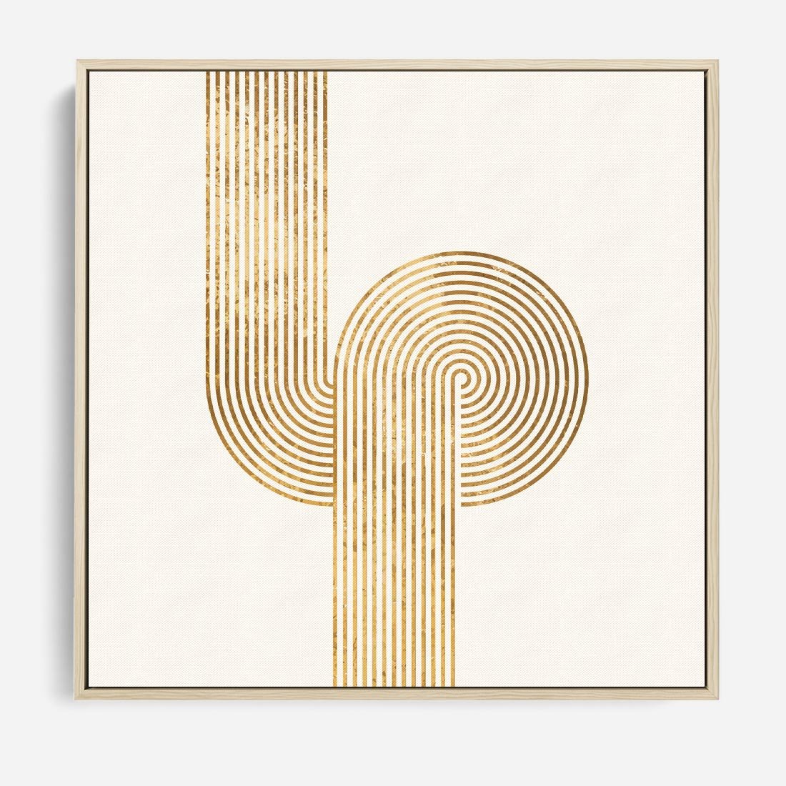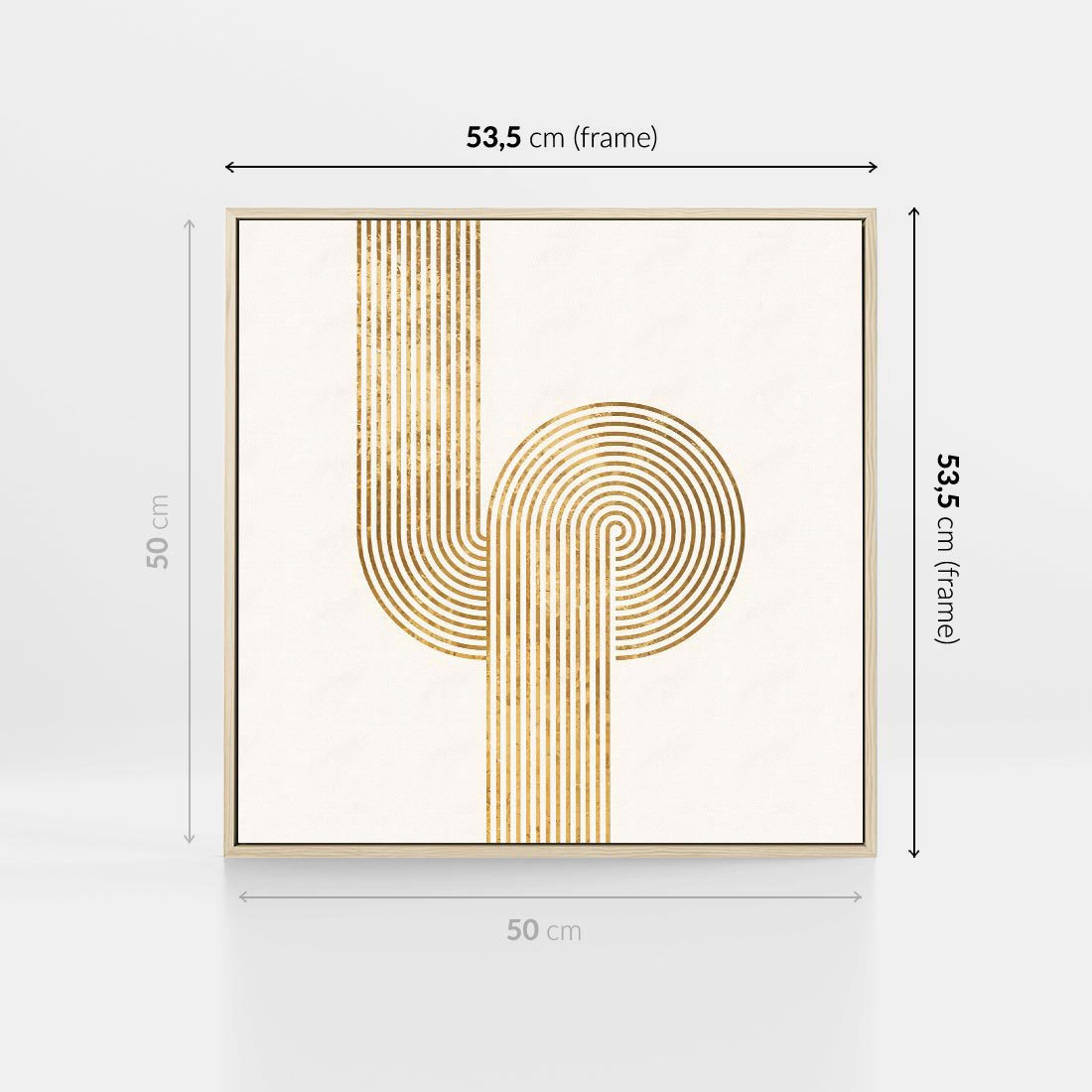Obraz w ramie 50x50 - Podróżne Kształty - geometryczne linie w złotym kolorze, minimalizm - rama drewno
