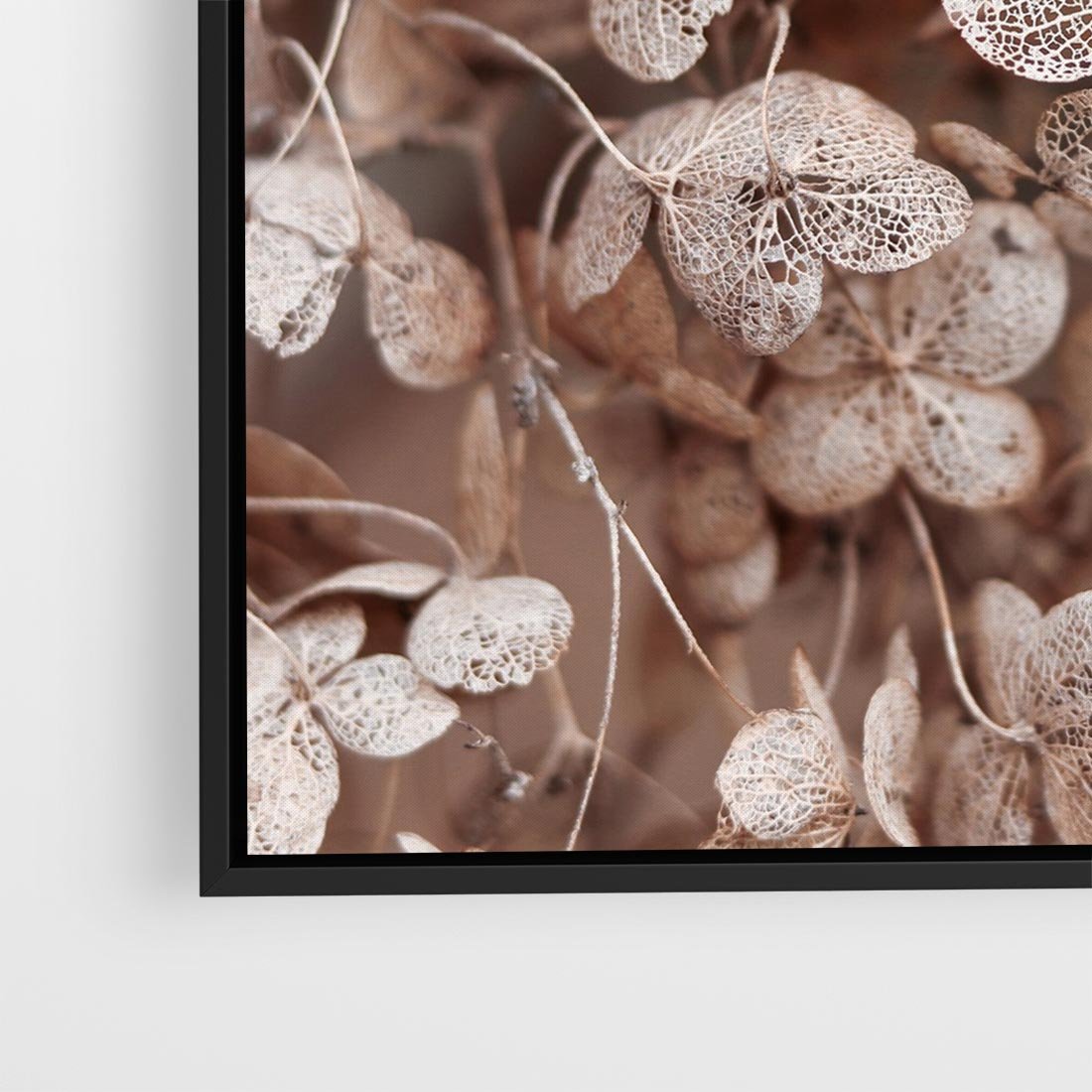 To ujęcie makro przedstawia zasuszone kwiaty w delikatnych beżowych odcieniach, które ukazują subtelność i urok przemijającej natury. Fotografia skupia się na drobnych detalach, ukazując piękno i delikatność nawet w procesie starzenia się roślin. Obraz zachwyca unikalnym pięknem i przypomina o ulotności życia oraz niezwykłej harmonii natury.