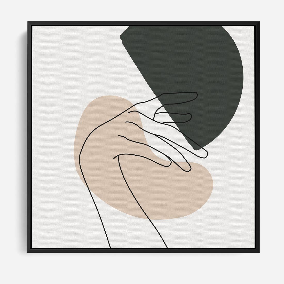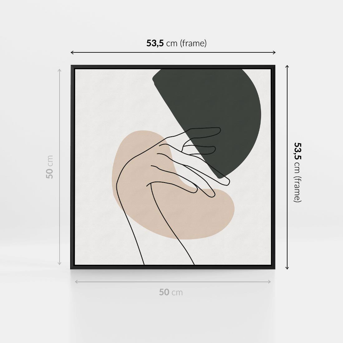 Obraz w ramie 50x50 - Przenikające Kształty - szkic jedną linią, one line - rama czarna
