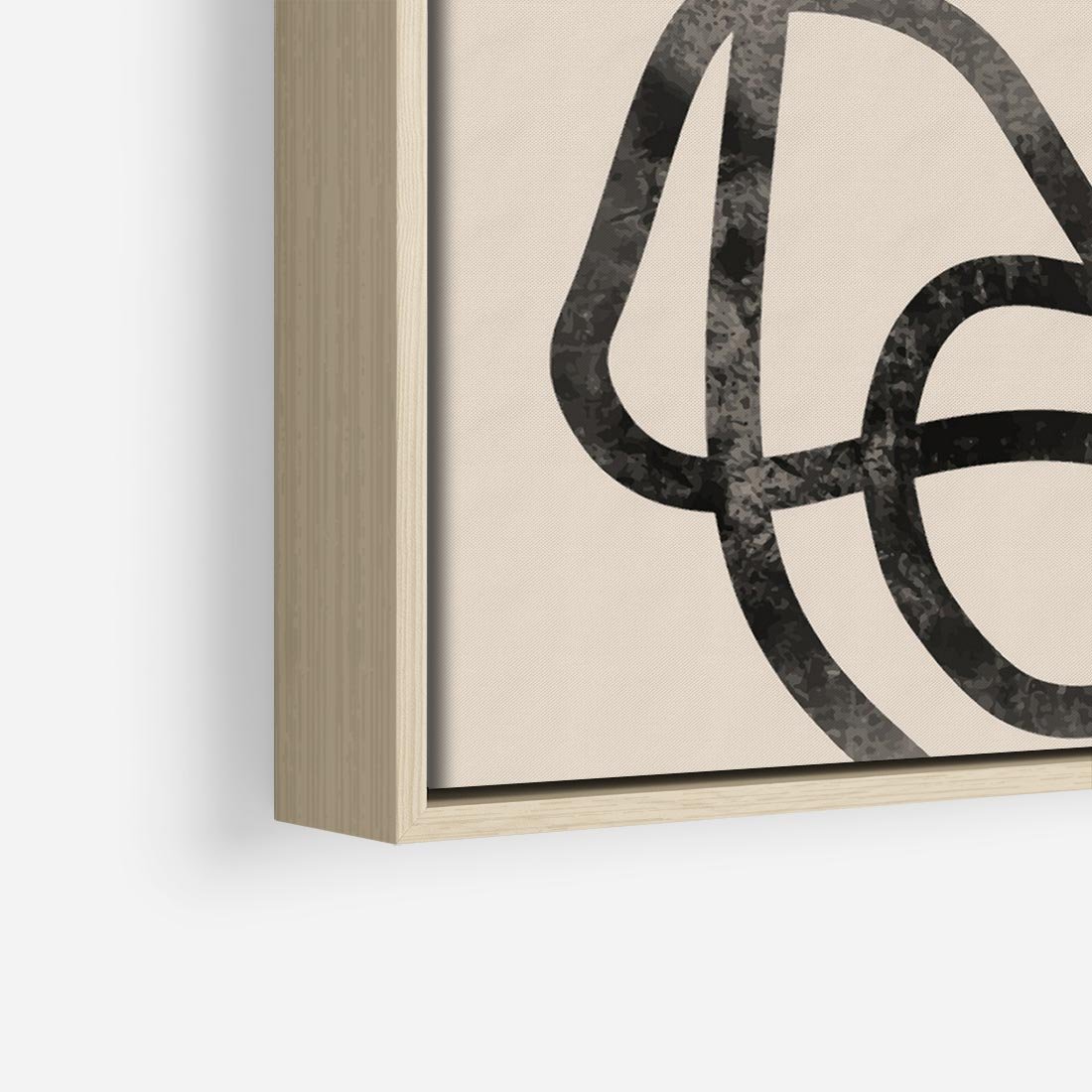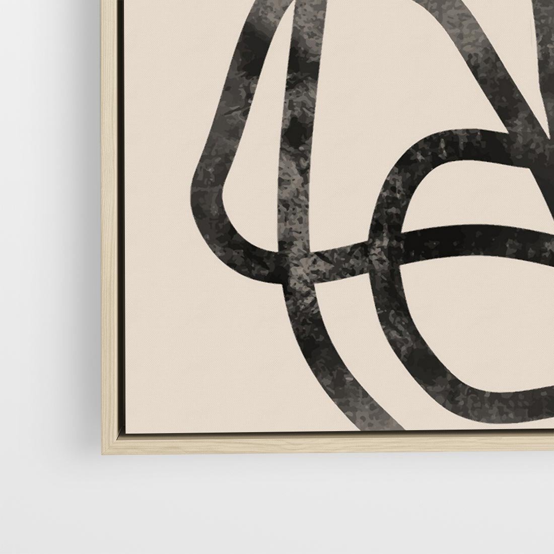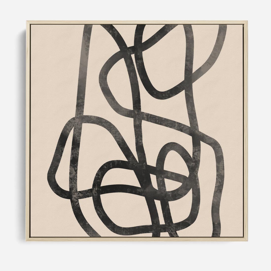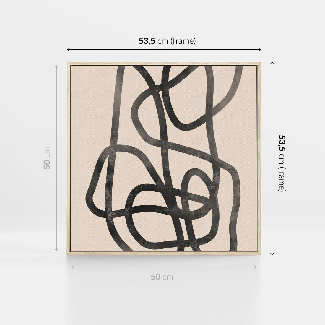 Obraz w ramie 50x50 - Przenikanie Wirtualnych Wymiarów - zaplątane minimalistyczne linie, na bezowym tle - rama drewno
