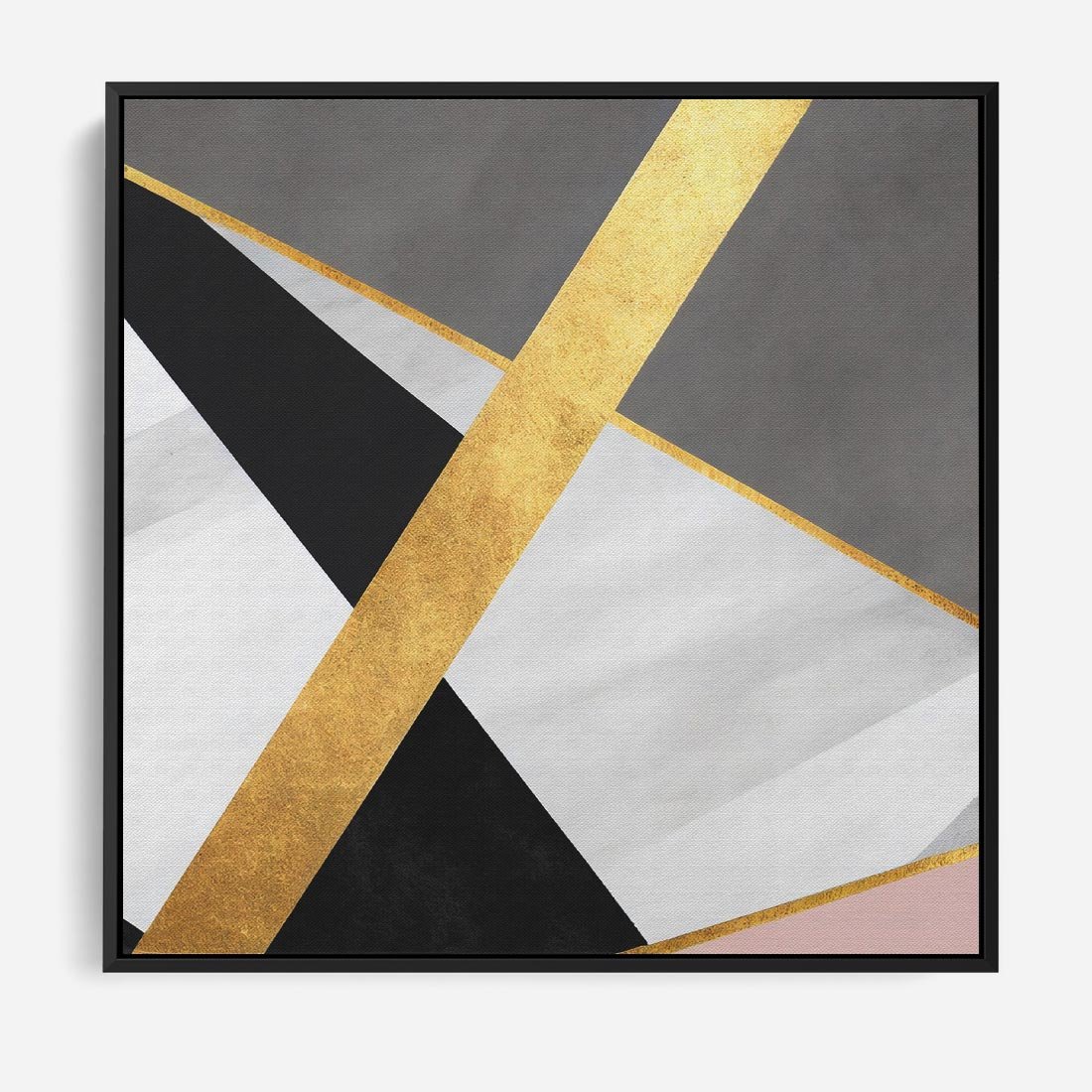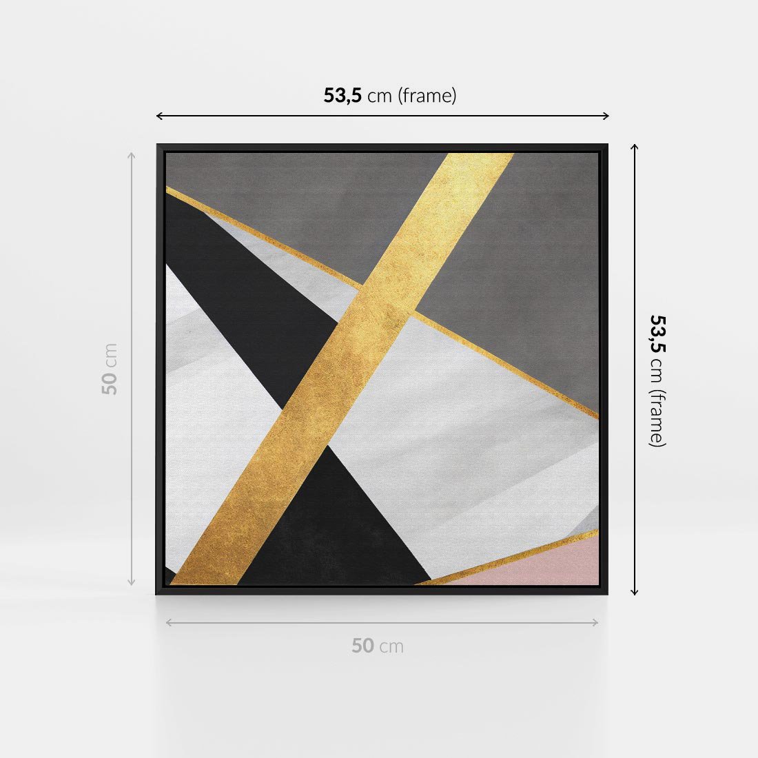Obraz w ramie 50x50 - Pudrowe Abstrakcyjne Lustra - złote abstrakcyjne linie, szarość - rama czarna