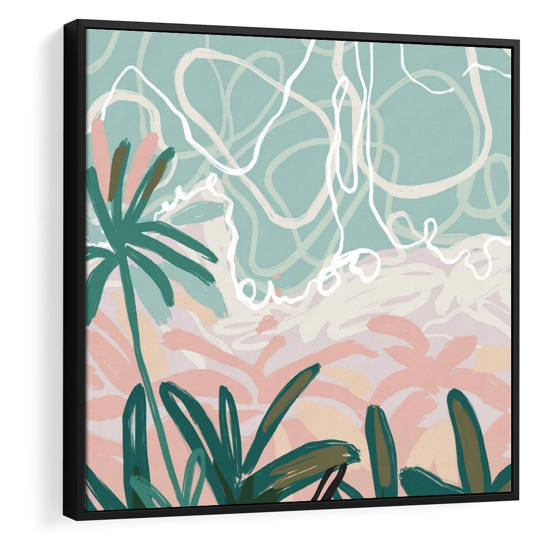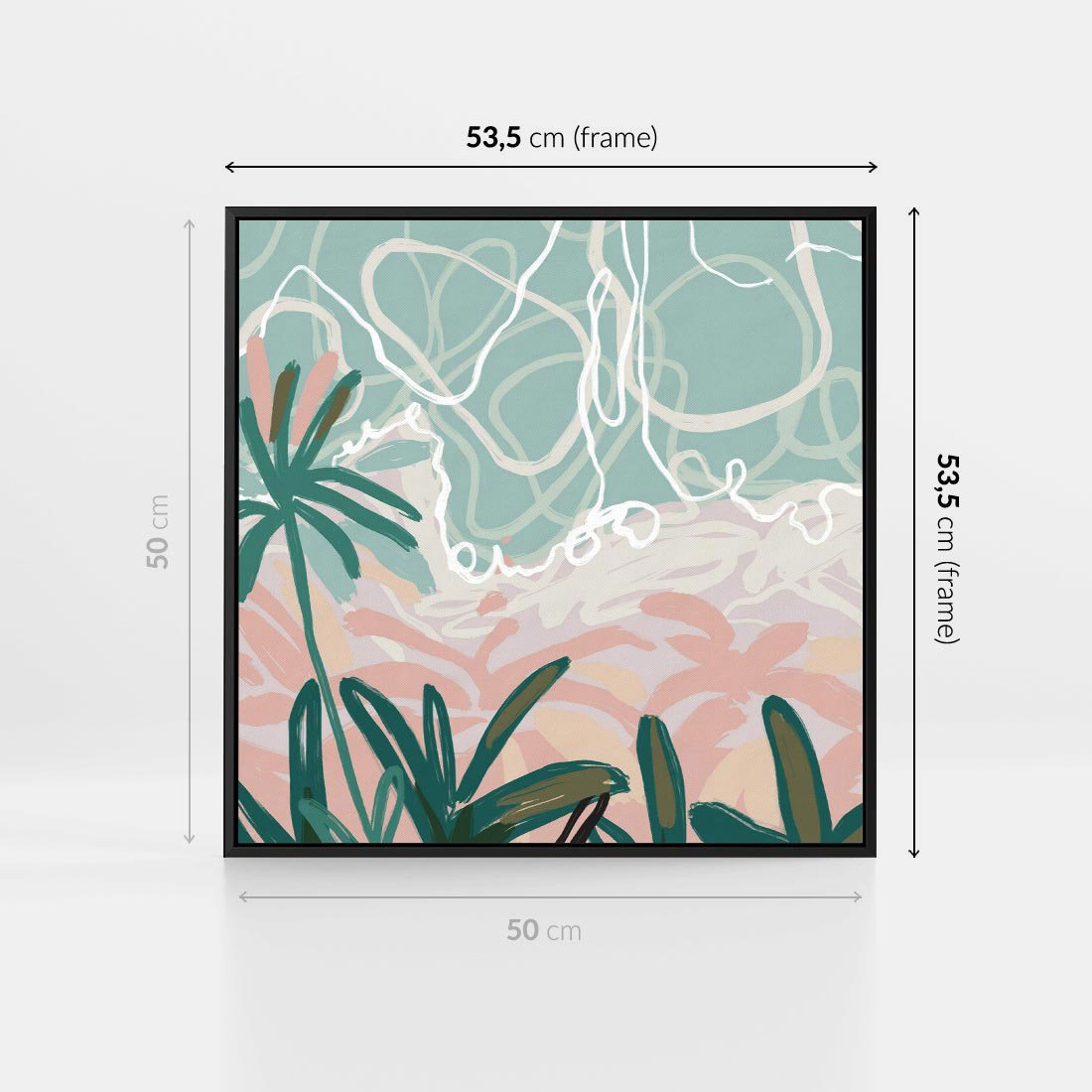Obraz w ramie 50x50 - Rajski Stan - pastelowy krajobraz, nowoczesny plakat - rama czarna