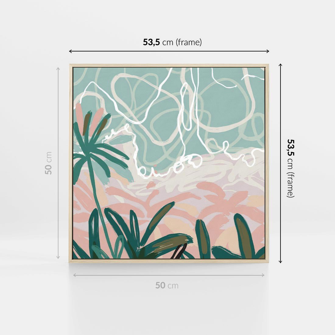 Obraz w ramie 50x50 - Rajski Stan - pastelowy krajobraz, nowoczesny plakat - rama drewno