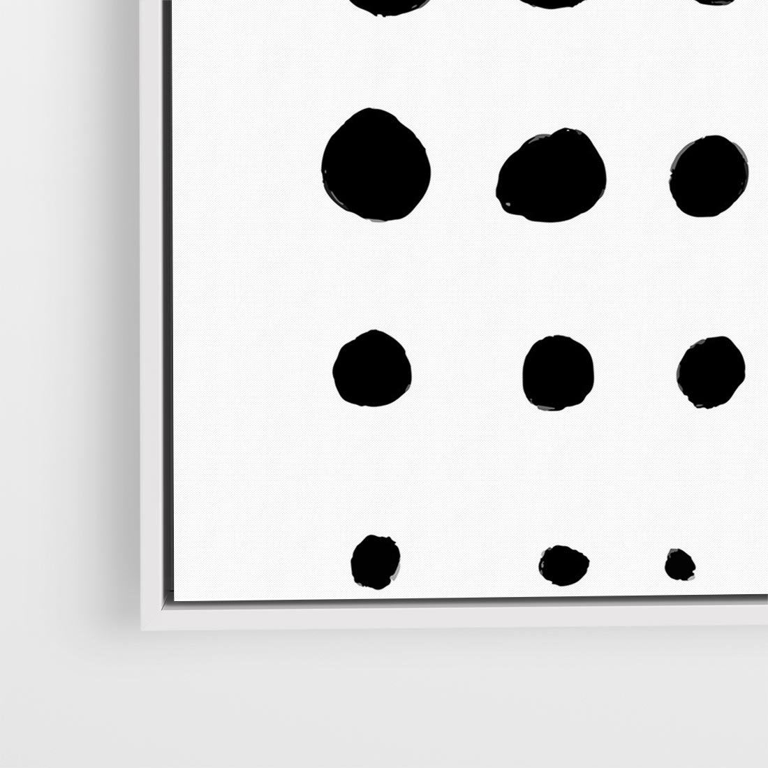 Obraz w ramie 50x50 - Refleksje Światła - minimalistyczna kompozycja, czarne kropkina białym tle - rama biała