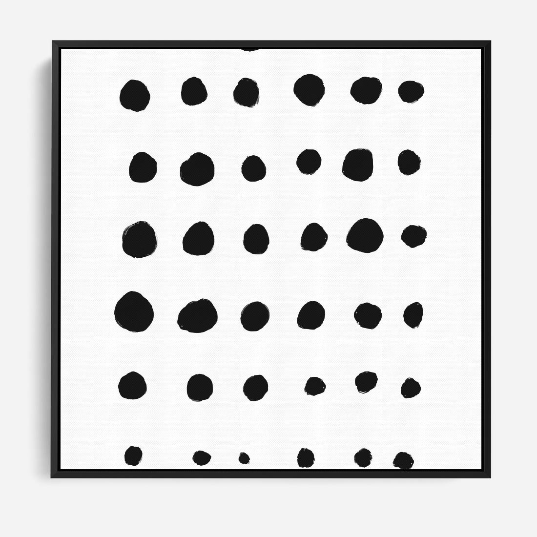 Obraz w ramie 50x50 - Refleksje Światła - minimalistyczna kompozycja, czarne kropkina białym tle - rama czarna