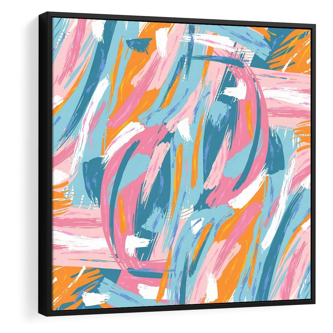Obraz w ramie 50x50 - Refleksje w krainie abstrakcji - abstrakcja, energiczne pociągnięcia pędzla - rama czarna