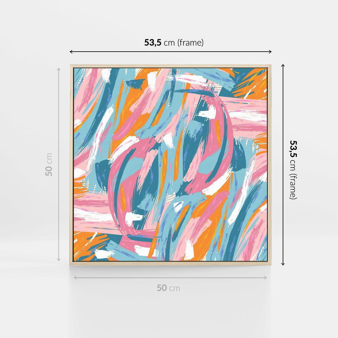 Obraz w ramie 50x50 - Refleksje w krainie abstrakcji - abstrakcja, energiczne pociągnięcia pędzla - rama drewno