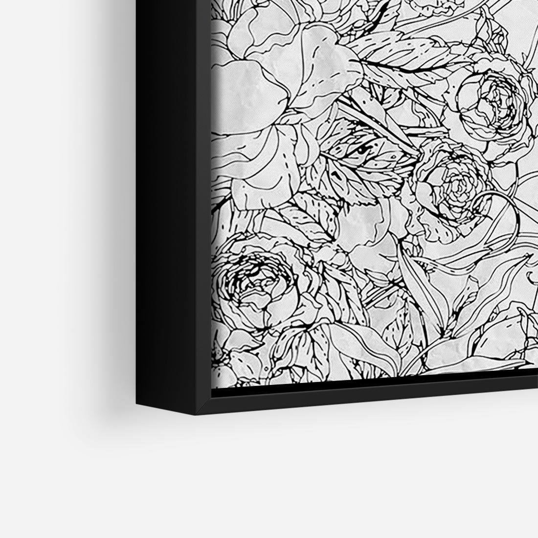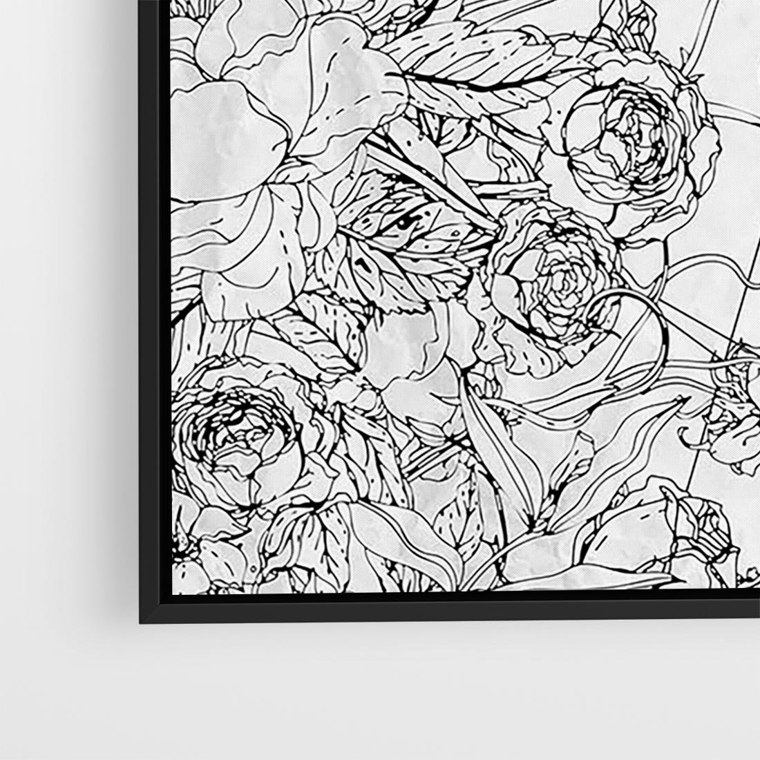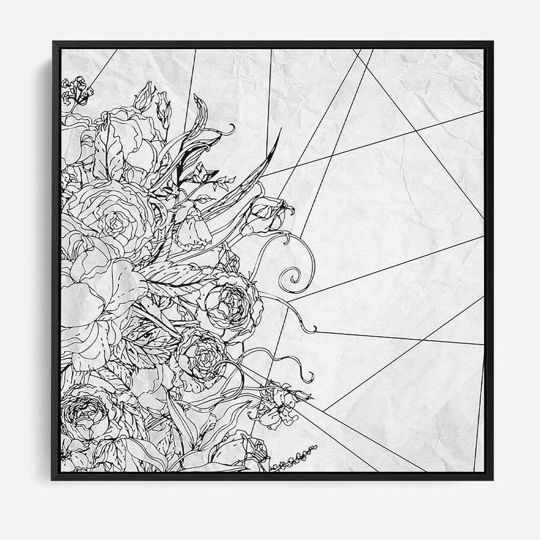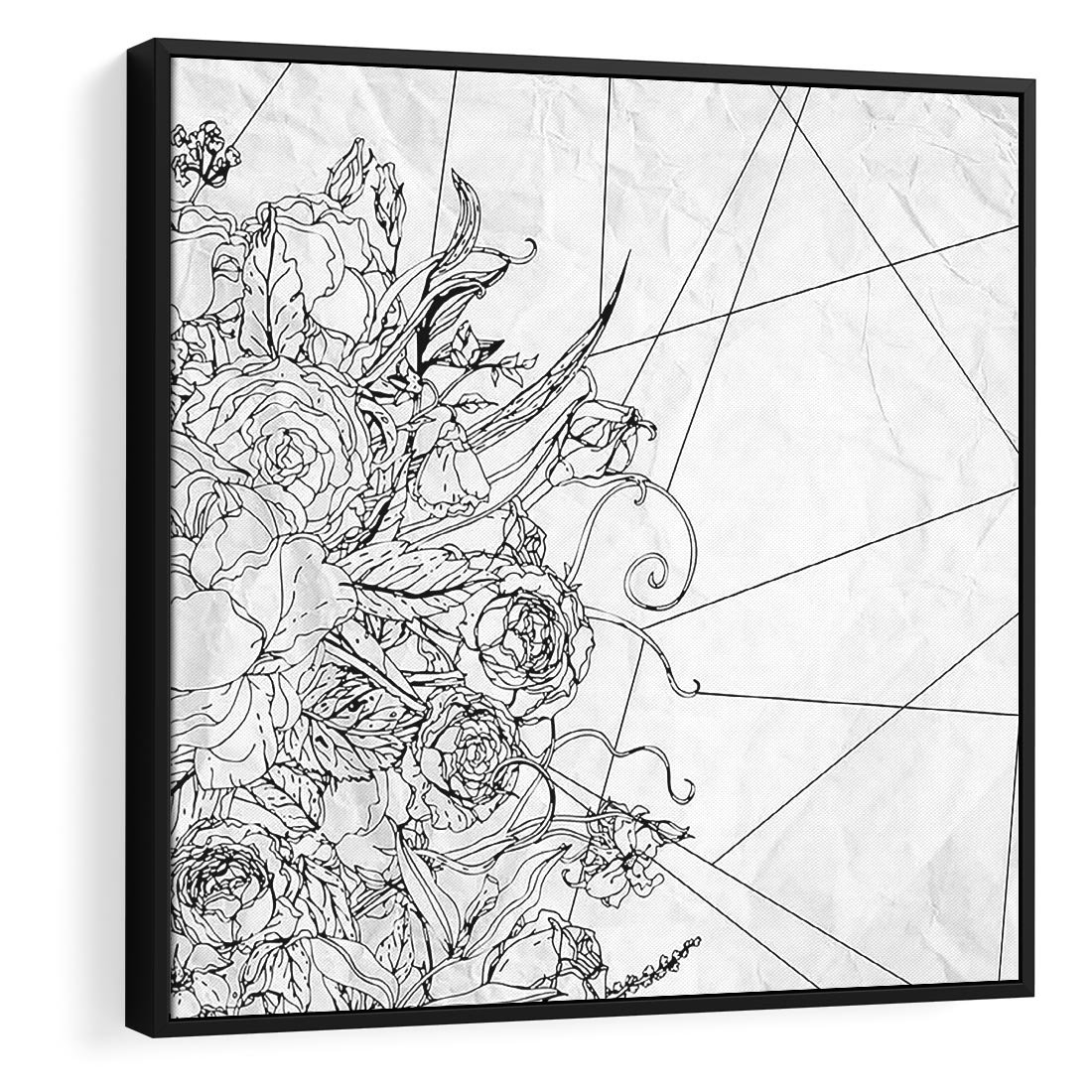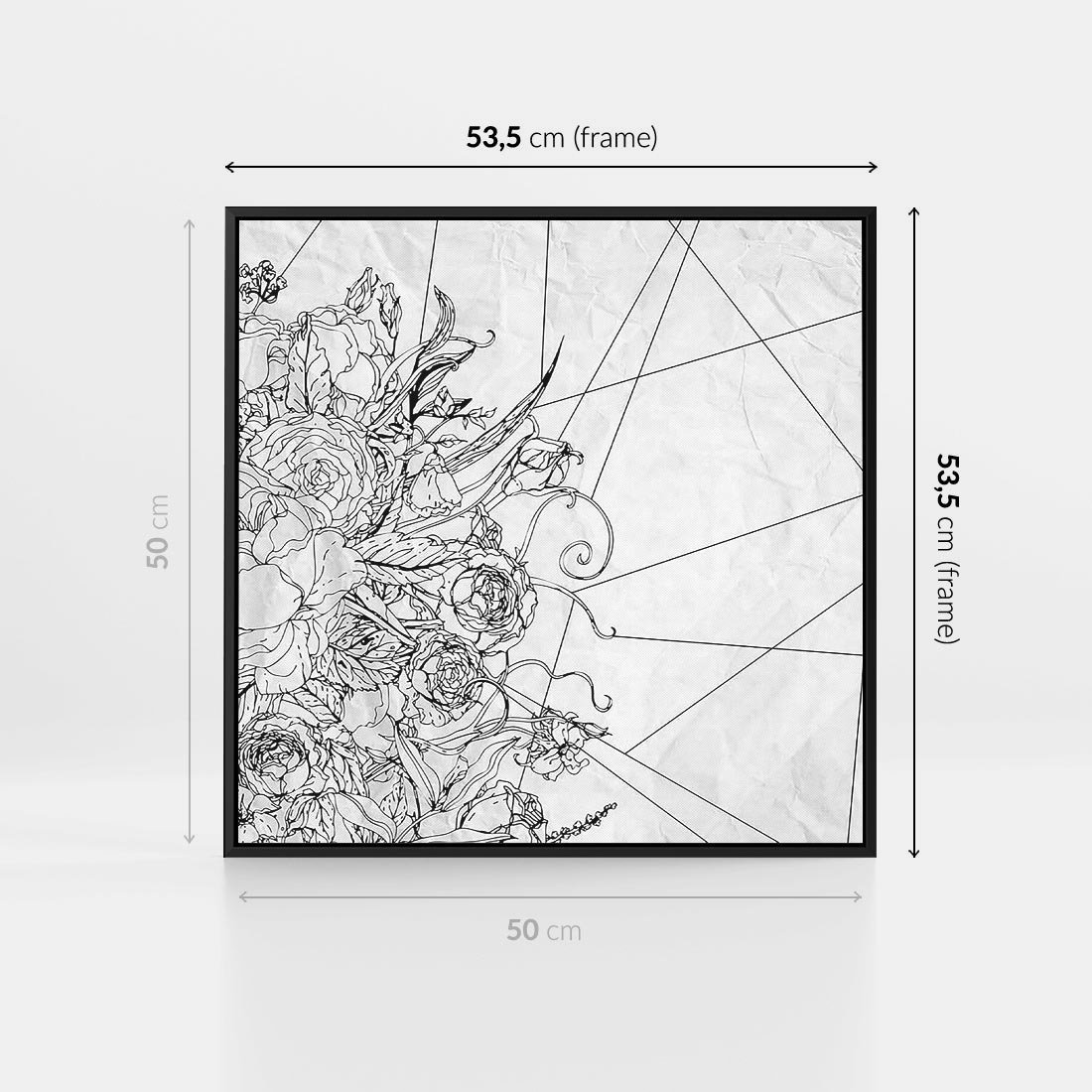Obraz w ramie 50x50 - Refleksje w martwym punkcie - graficzny szkic, kompozycja kwiatów - rama czarna