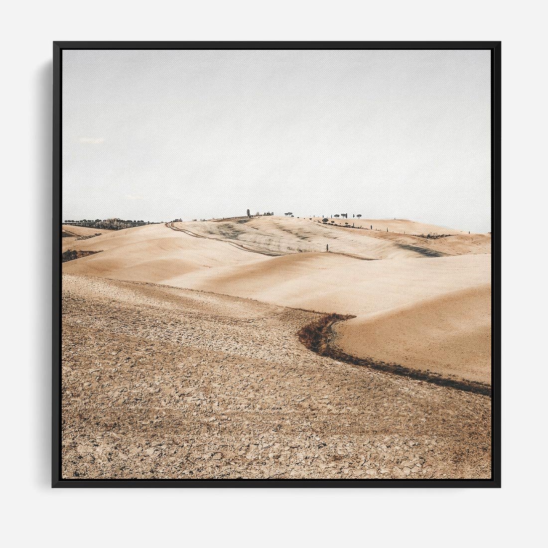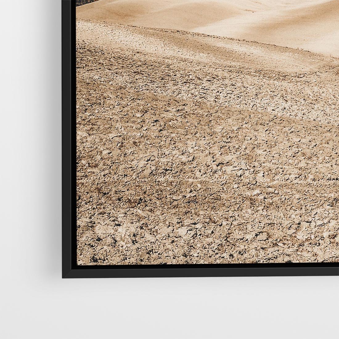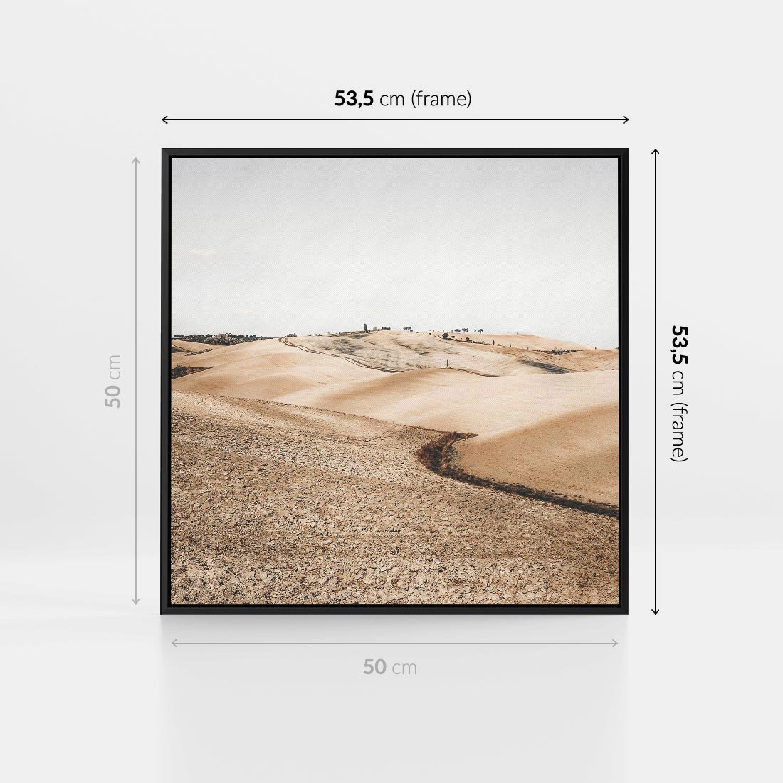 Obraz w ramie 50x50 - Refleksyjny taniec myśli - pustynny krajobraz, odcienie sepii - rama czarna