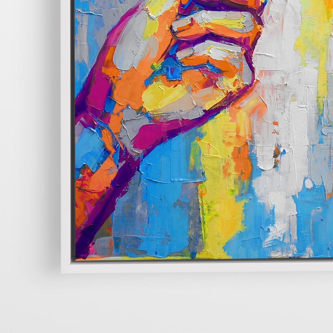 To abstrakcyjne dzieło ukazuje dłoń trzymającą żarówkę, symbolizującą pomysł i inspirację. Nieoczywiste kolory, głównie żółć i niebieski, podkreślają niezwykłość i wyjątkowość tej idei. Całość kompozycji emanuje kreatywnością i wizją, zachęcając widza do odkrywania nowych horyzontów. To malarskie arcydzieło przypomina nam, jak ważne jest odkrywanie nieznanych obszarów umysłu, by odnaleźć wyjątkowe rozwiązania.