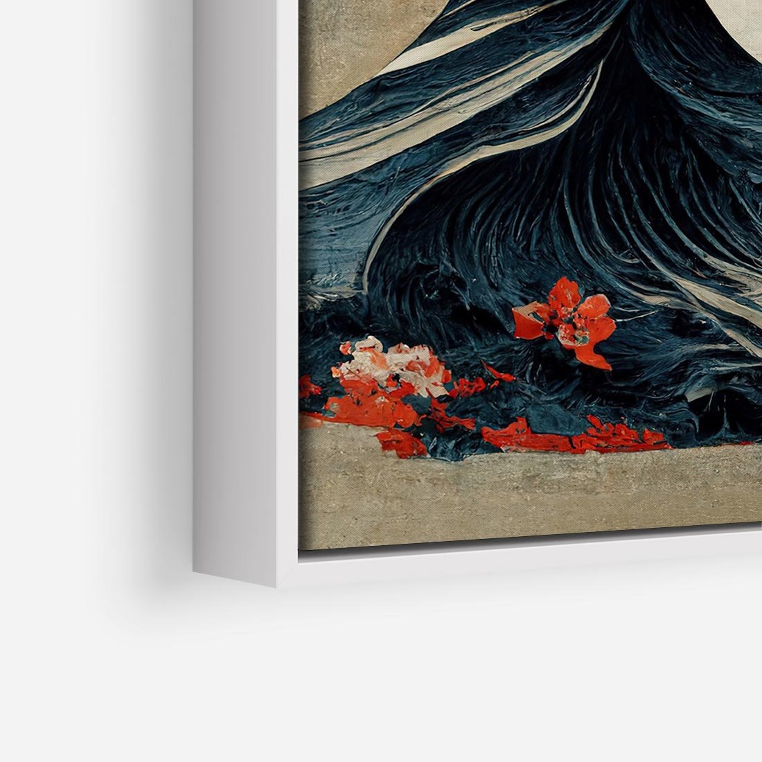 Przenieś się do fascynującego świata sztuki japońskiej z tym ujmującym obrazem. Fale oceanu oraz odcienie bieli i czerwieni ożywiają płótno, a kwiaty wiśni dodają delikatnego uroku. To dzieło sztuki stworzone dla miłośników elegancji i natury. Doskonały akcent dla tych, którzy pragną wprowadzić harmonię i subtelny wyraz do swoich wnętrz.