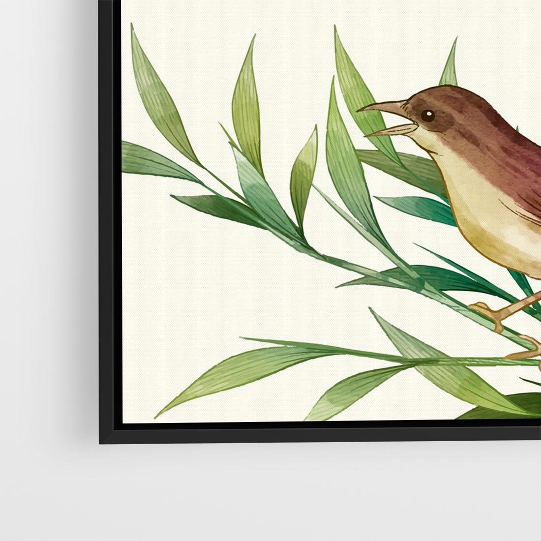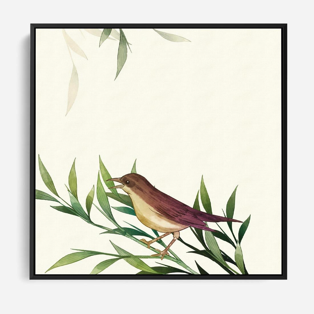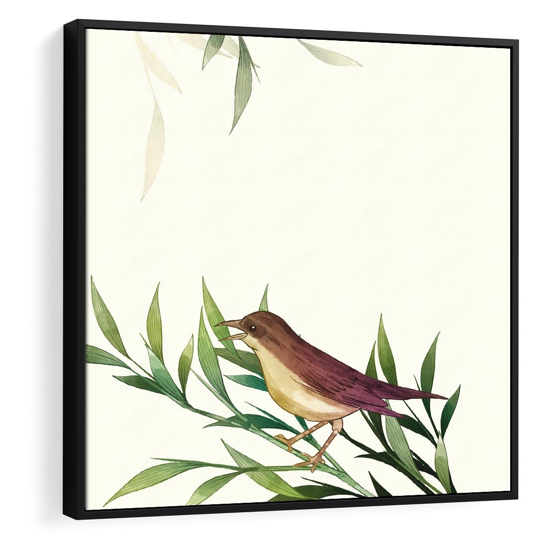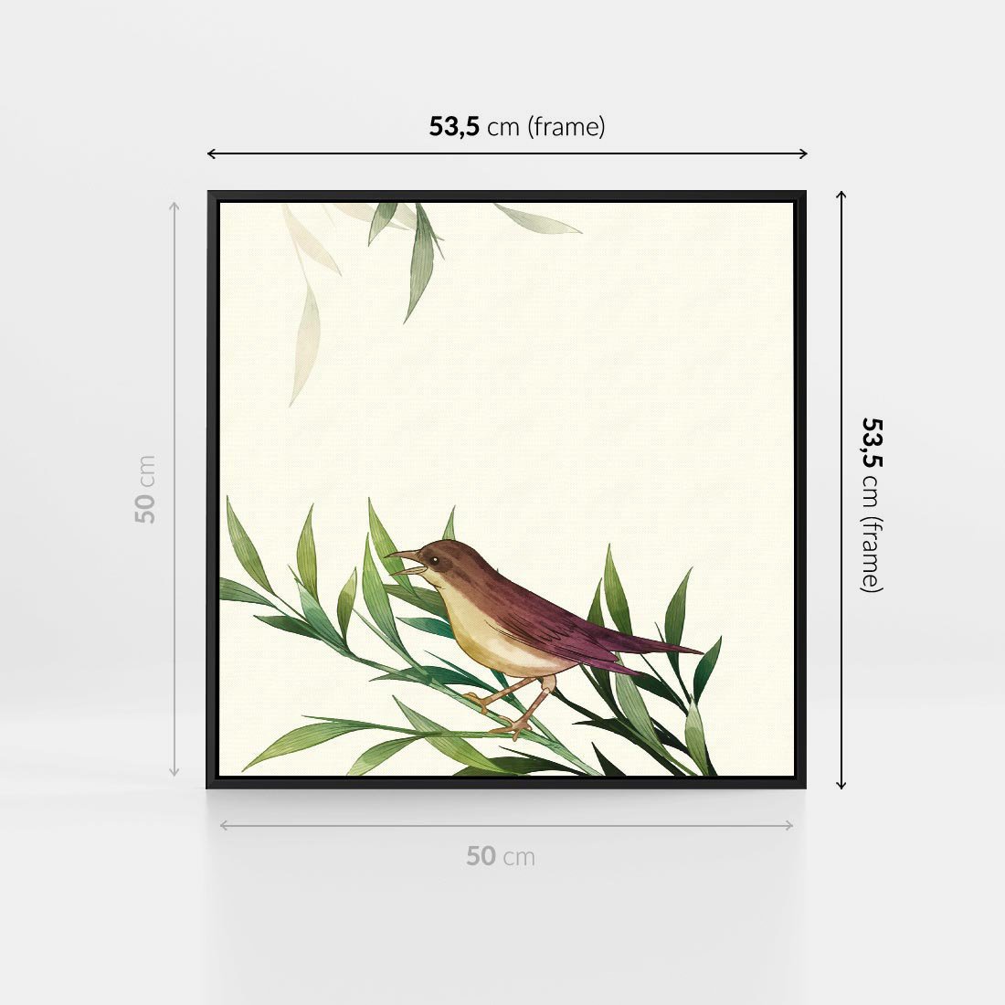 Obraz w ramie 50x50 - Roślinne Nastroje - japońska sztuka, ptak - rama czarna