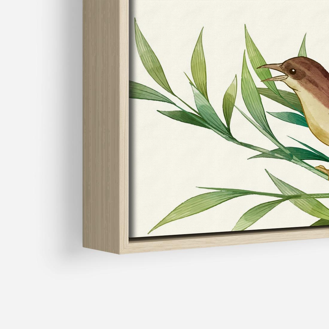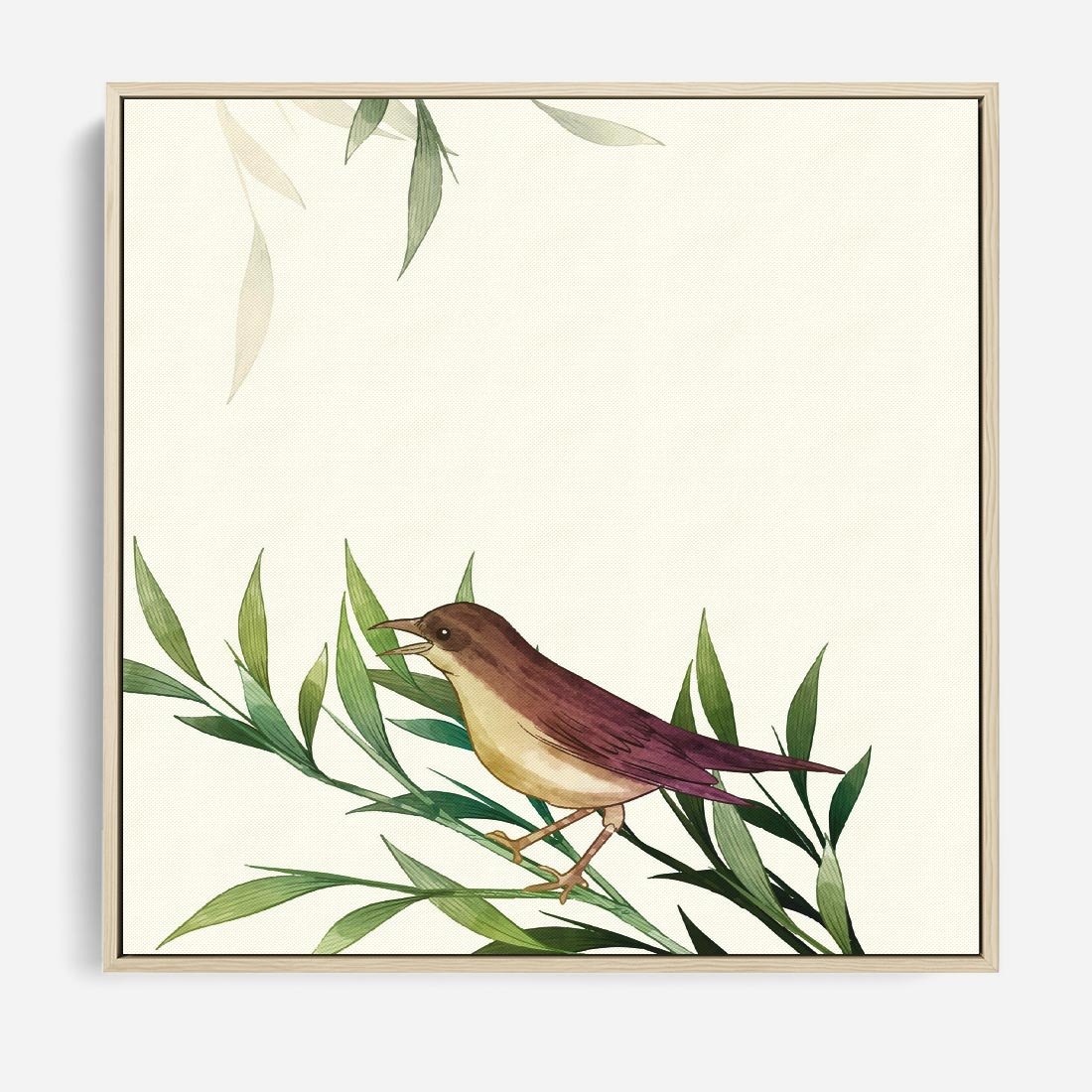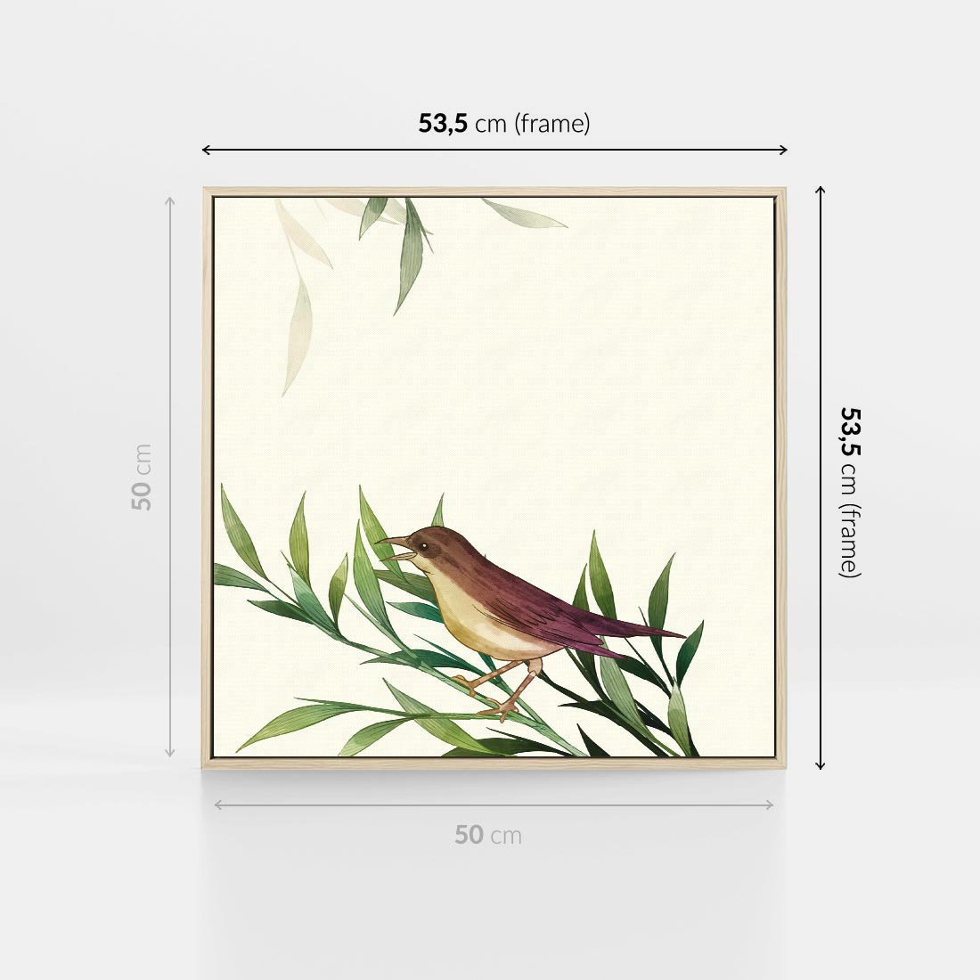 Obraz w ramie 50x50 - Roślinne Nastroje - japońska sztuka, ptak - rama drewno