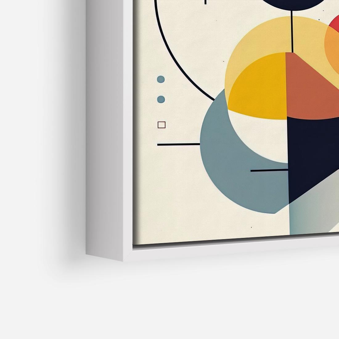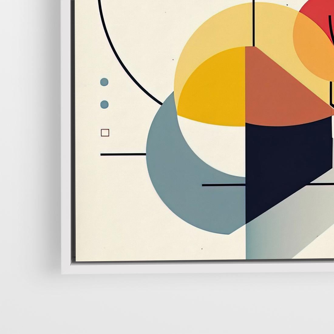 Ta abstrakcyjna geometryczna kompozycja jest zbudowana z precyzyjnych kształtów, takich jak koła i linie. Tworzą one harmonijną równowagę pomiędzy formami, tworząc interesującą wizualną podróż dla oglądającego.