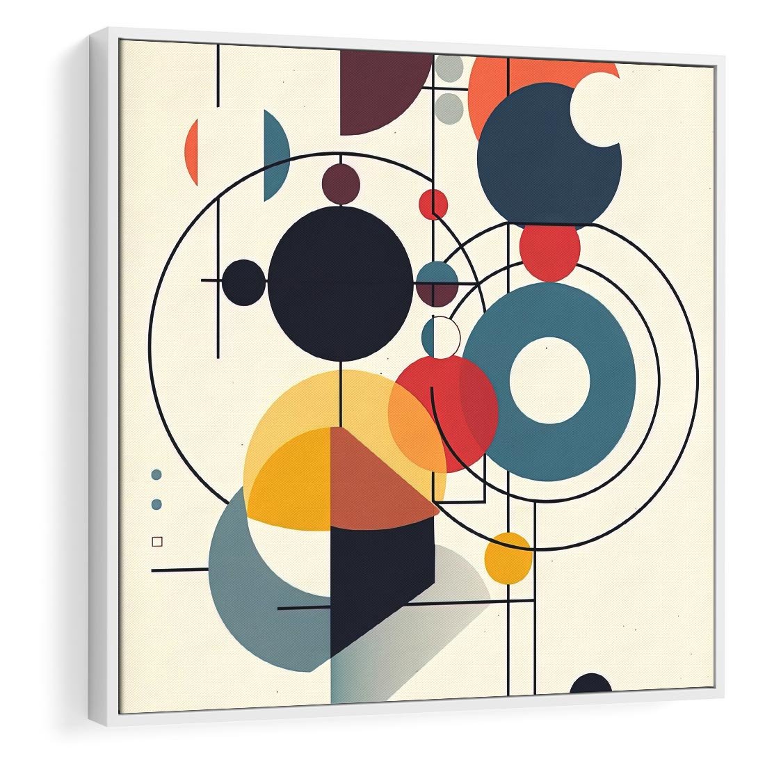 Obraz w ramie 50x50 - Rozbijające Barwne Granice - abstrakcyjna geometryczna kompozycja, koła linie - rama biała