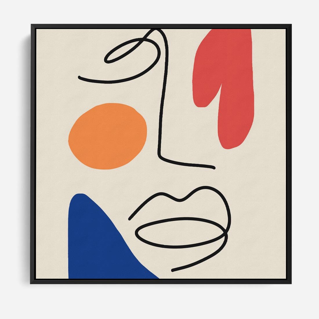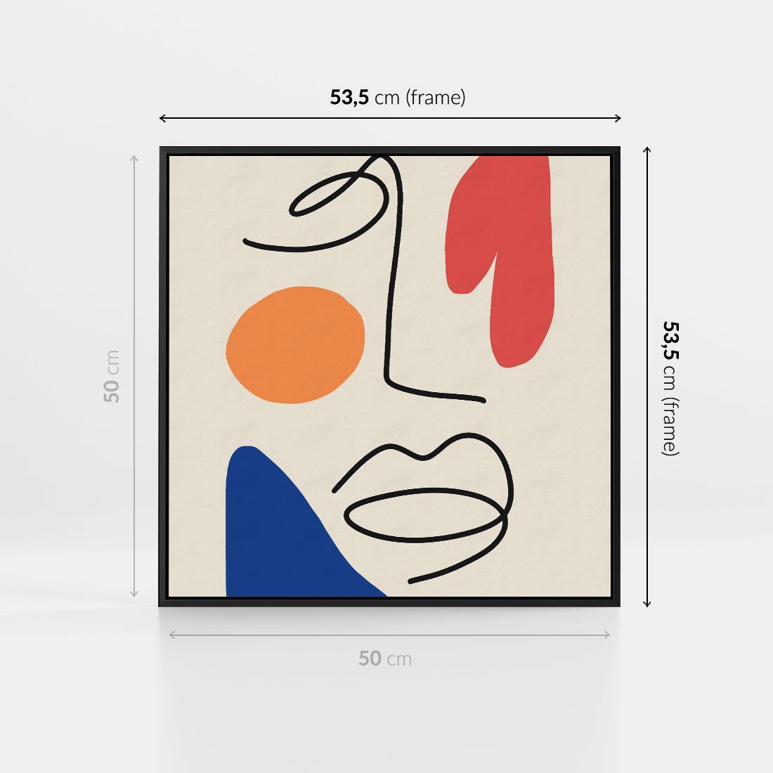 Obraz w ramie 50x50 - Rozbijające Granice Kształtów - abstrakcyjny obraz, przypomina twarz - rama czarna