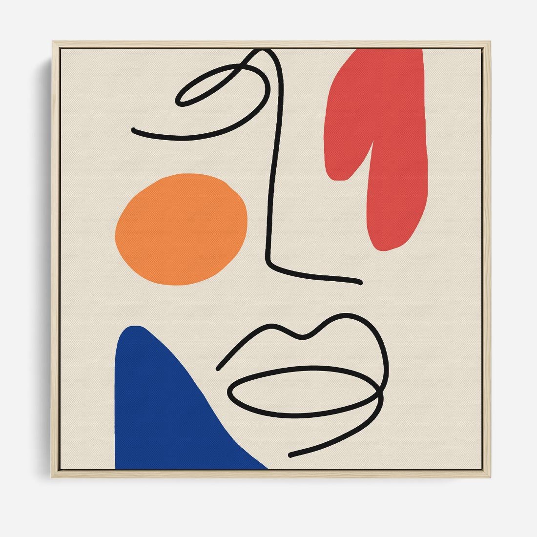 Obraz w ramie 50x50 - Rozbijające Granice Kształtów - abstrakcyjny obraz, przypomina twarz - rama drewno