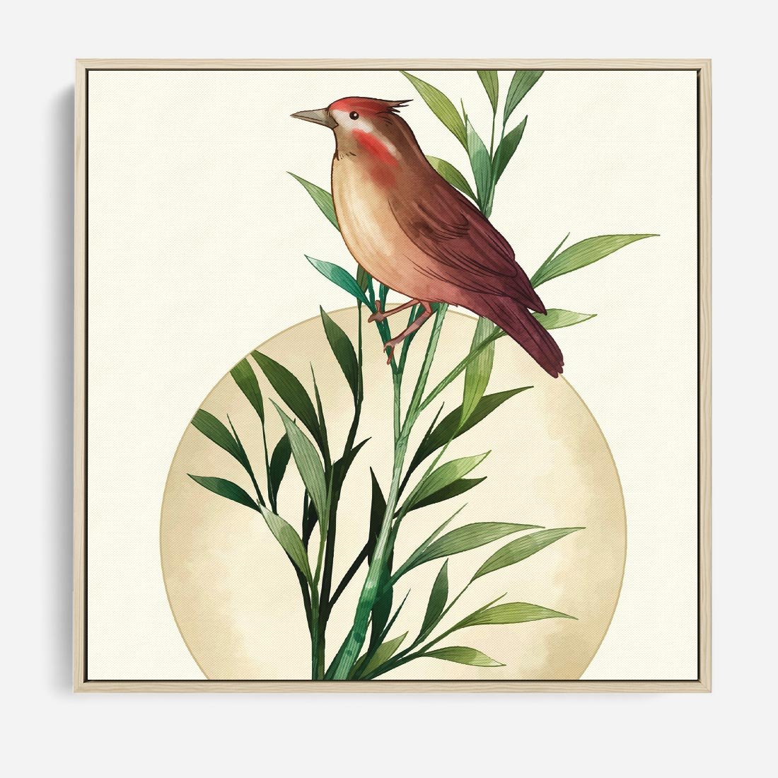 Obraz w ramie 50x50 - Rozkwitająca Delikatność - japońska sztuka, ptak - rama drewno