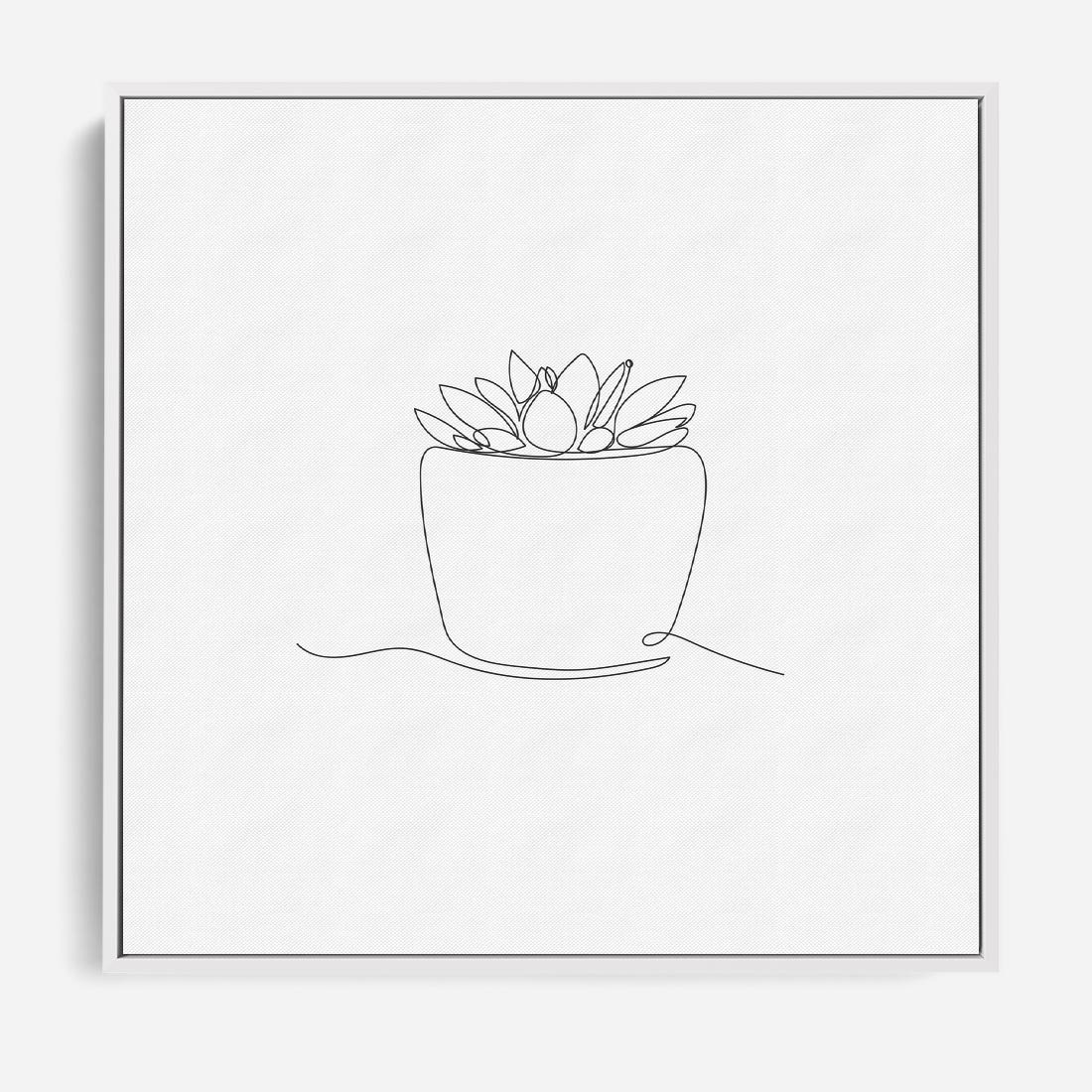 Delikatny szkic przedstawiający sukulent w doniczce. Minimalistyczny design podkreśla piękno rośliny, tworząc harmonijną kompozycję roślinnych motywów.szkic, minimalizm, sukulent w doniczce, roślinne motywy
