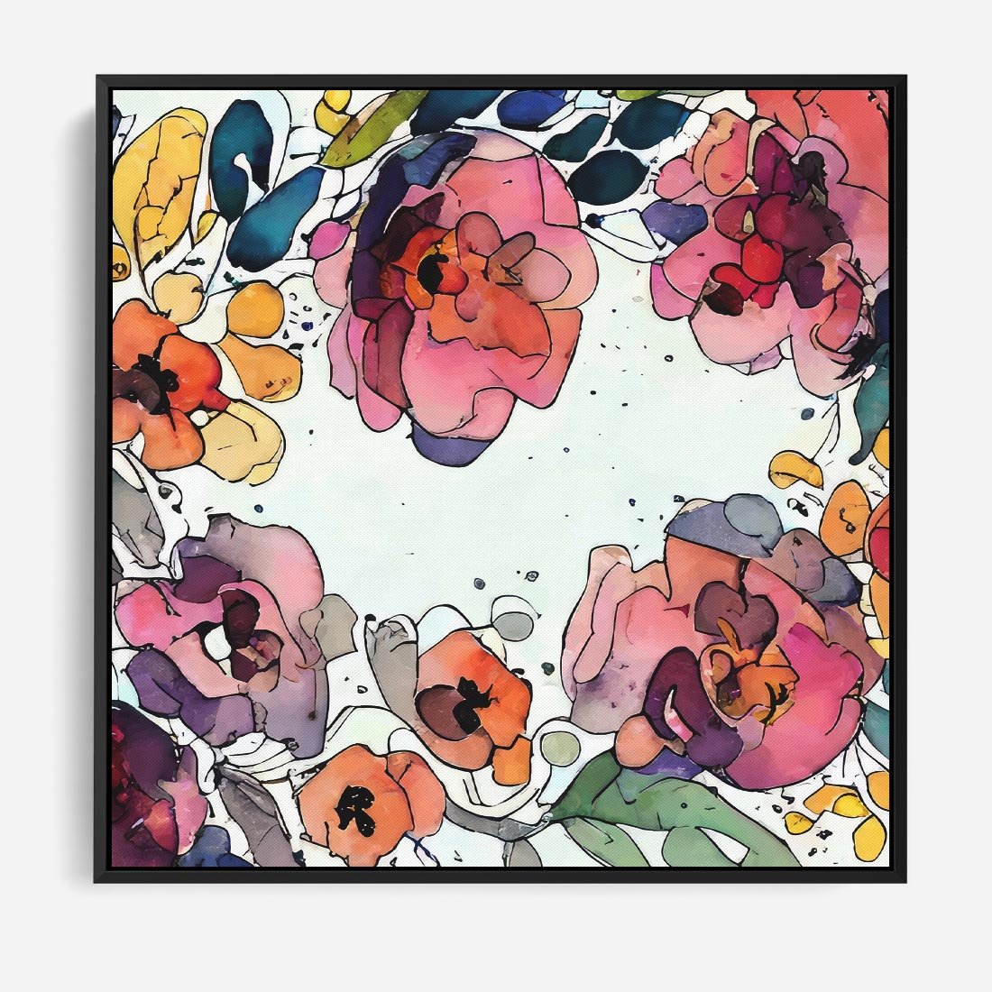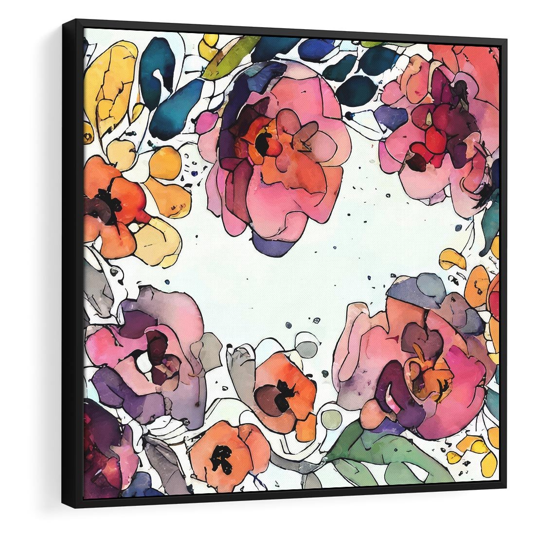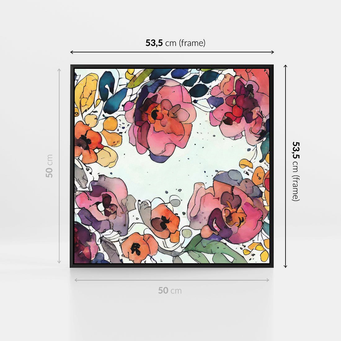 Obraz w ramie 50x50 - Rozkwitające marzenia - akwarelowe kwiaty, kolory - rama czarna