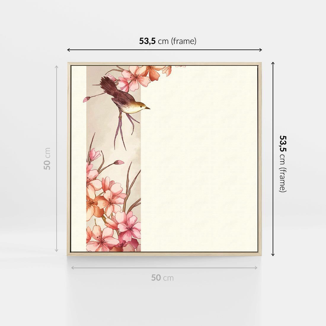 Obraz w ramie 50x50 - Rozkwitające Marzenia - japońska sztuka, ptak - rama drewno