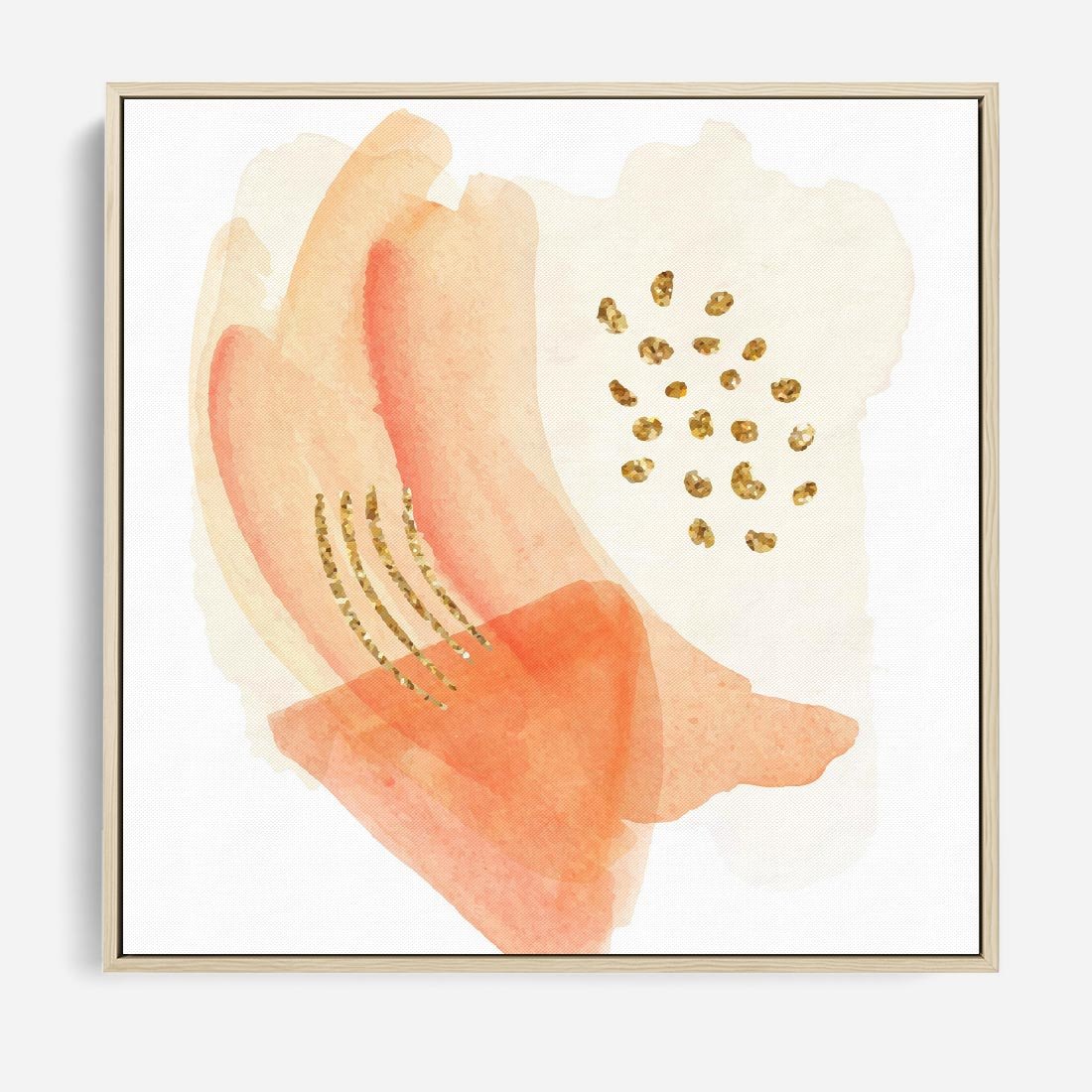 Abstrakcyjne akwarelowe plamy w minimalistycznym stylu. Subtelne pastele z nutą złotych elementów tworzą spokojną i wyrafinowaną kompozycję.