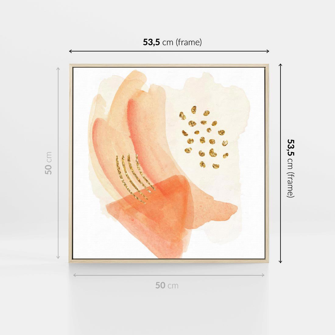 Obraz w ramie 50x50 - Rozkwitające Odbicia Form - abstrakcyjne akwarelowe plamy, minimalizm - rama drewno
