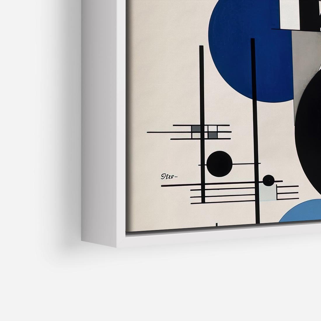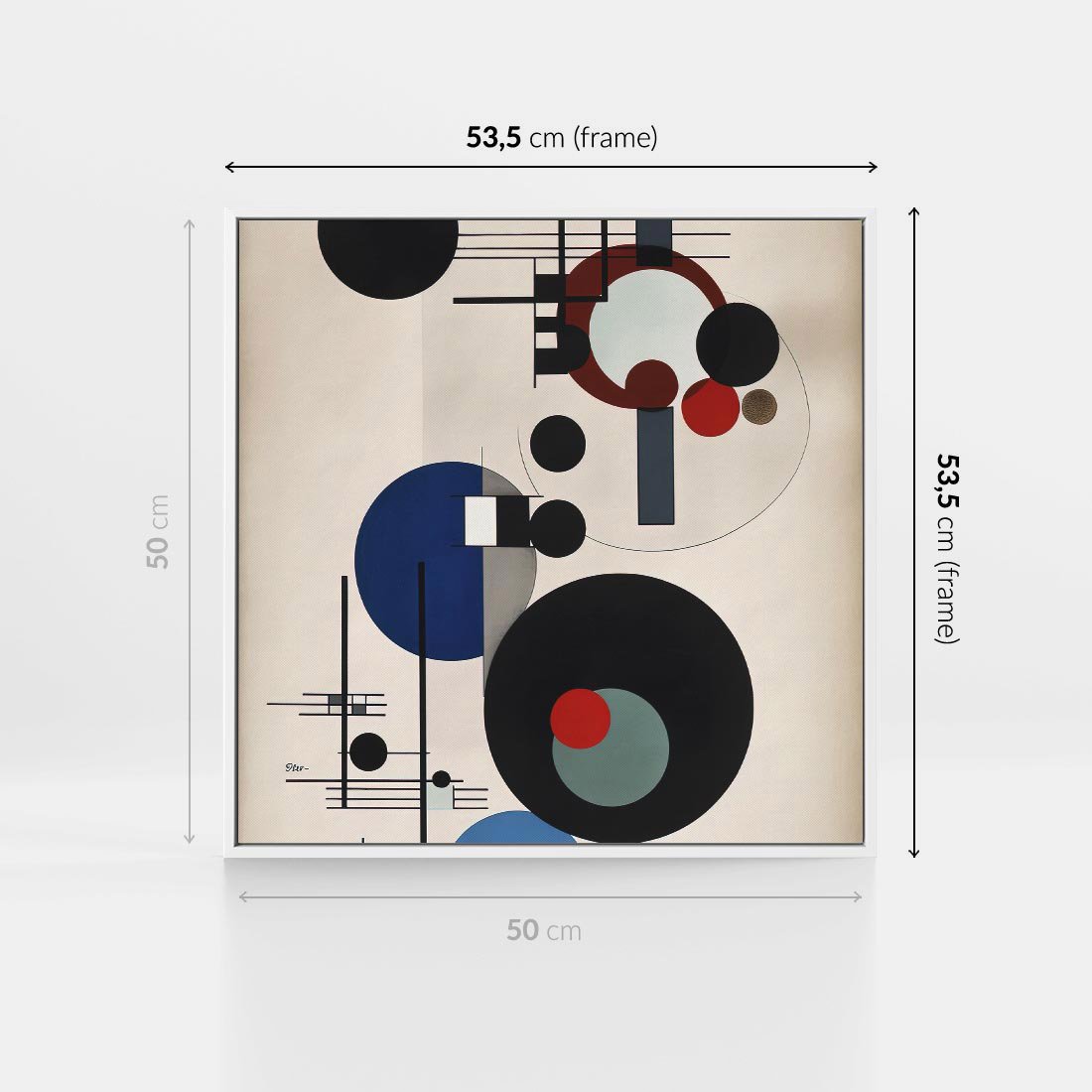 Ta abstrakcyjna geometryczna kompozycja inspirowana stylem Wassily'ego Kandinsky'ego połącza dynamiczne koła i linie w harmonijną całość. Zaskakujące połączenia kształtów tworzą fascynującą podróż wzrokową, podobnie jak w dziełach mistrza abstrakcji. To wyjątkowe dzieło sztuki emanuje energią i pasją, oddając hołd twórczości Kandinsky'ego w nowoczesnym kontekście.