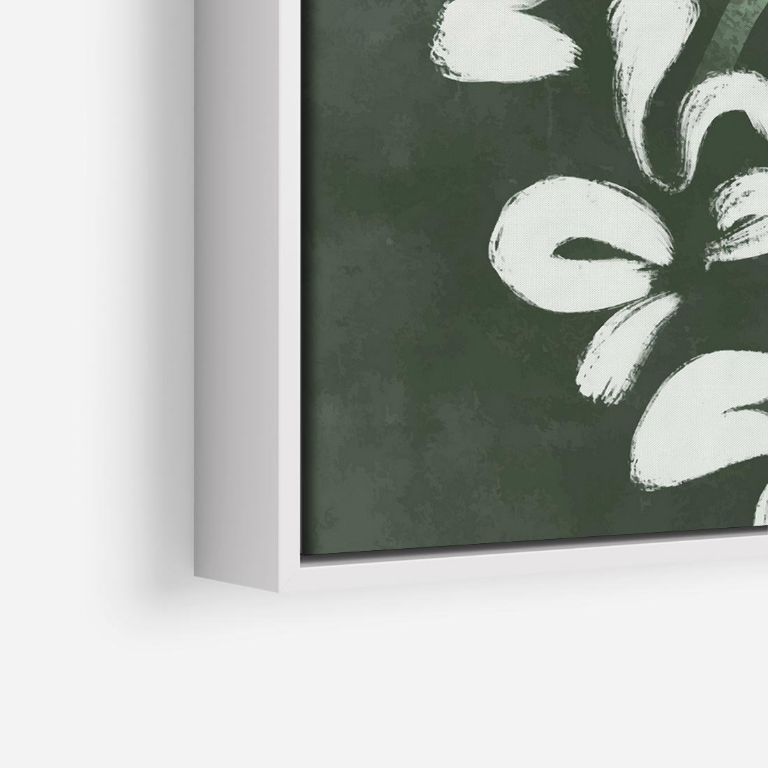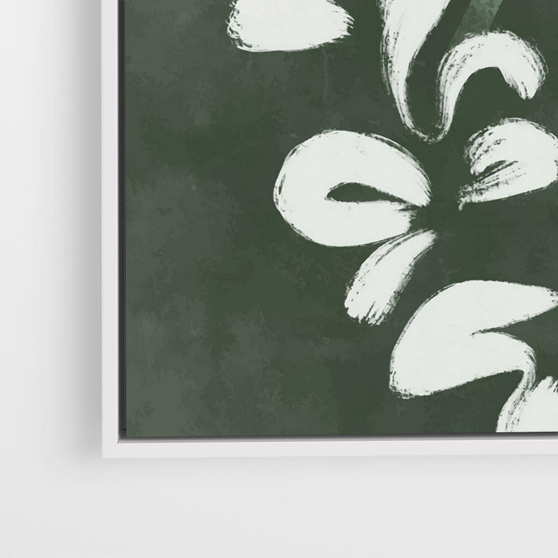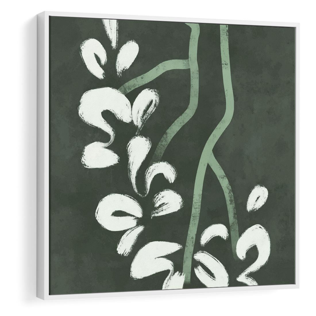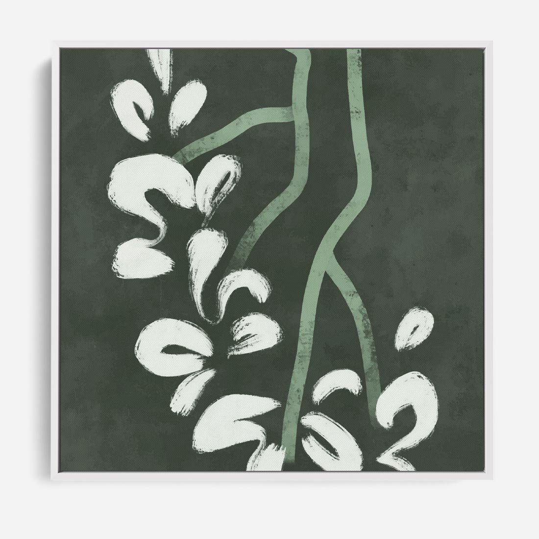 Obraz w ramie 50x50 - Rozkwitające Zielone Gałęzie - abstrakcyjne delikatne zielone linie, podobne do gałęzi kwiatów - rama biała