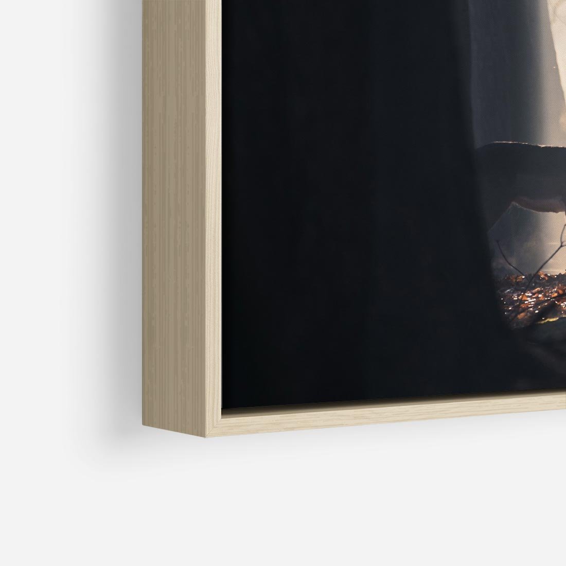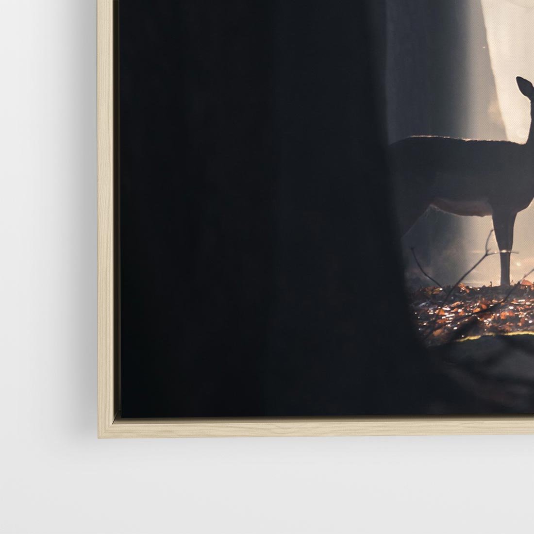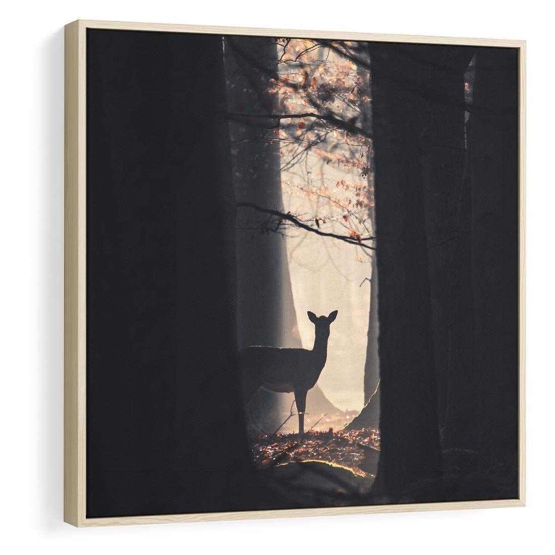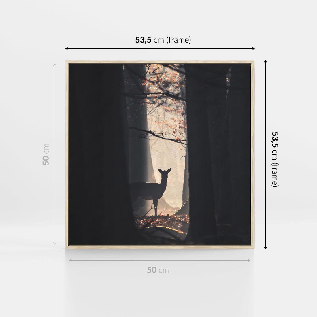 Obraz w ramie 50x50 - Sarnie Skoki - zdjęcie, klimatyczny las - rama drewno