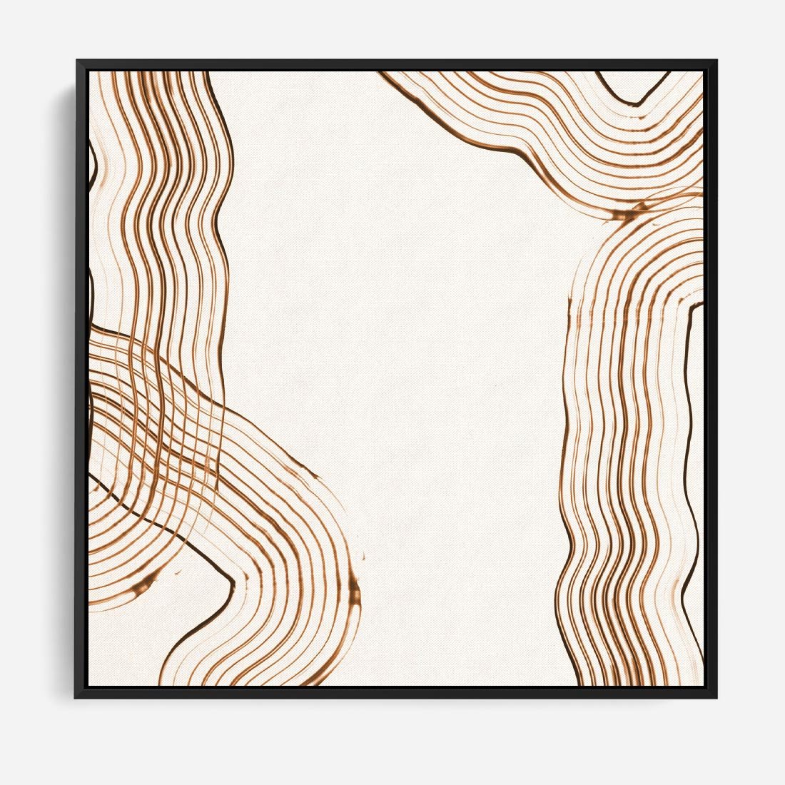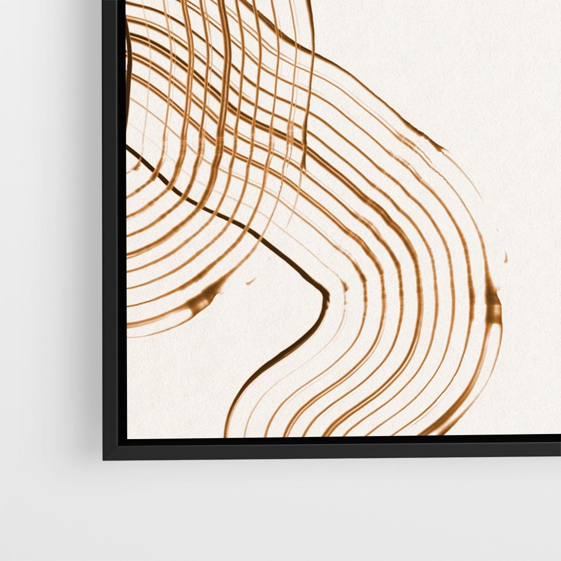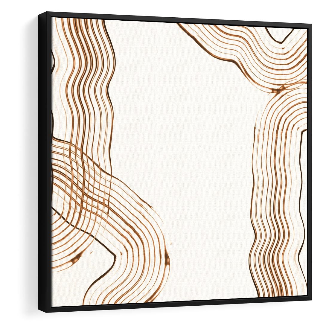 To minimalistyczne dzieło sztuki prezentuje abstrakcyjne brązowe linie kontrastujące na czystym białym tle. Kompozycja skupia się na prostocie formy i ekspresji, co nadaje obrazowi elegancji i nowoczesności. Kontrast pomiędzy brązowymi liniami a jasnym tłem tworzy harmonijny efekt, przyciągając wzrok i zapraszając do refleksji nad znaczeniem formy i kształtu.