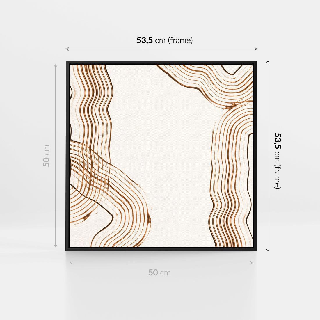 Obraz w ramie 50x50 - Ścieżki pędzla i myśli - minimalistyczna kompozycja, abstrakcyjne brązowe linie na białym tle - rama czarna