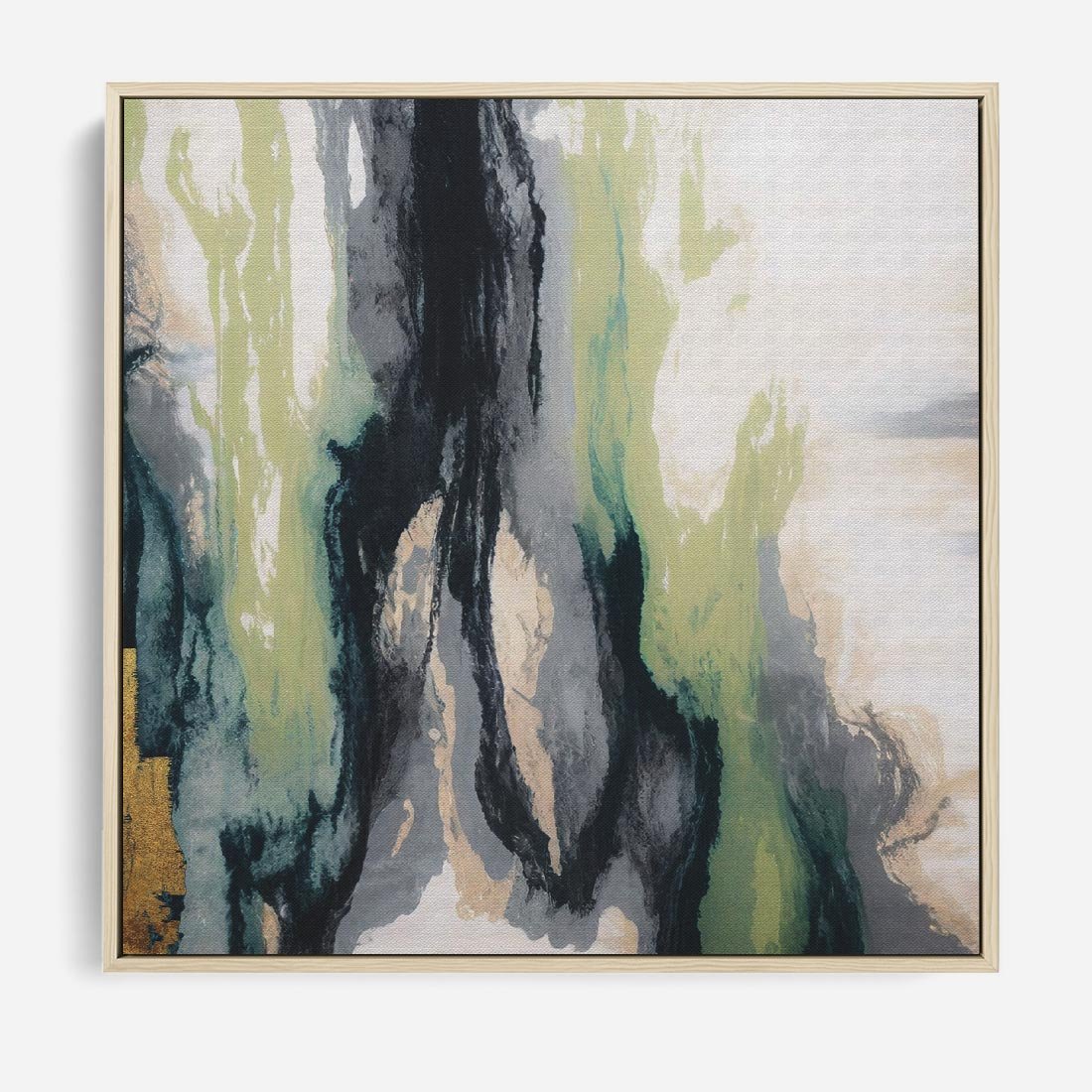 Obraz w ramie 50x50 - Sfumowane zmysły artysty - rozmyte kolory, zieleń - rama drewno